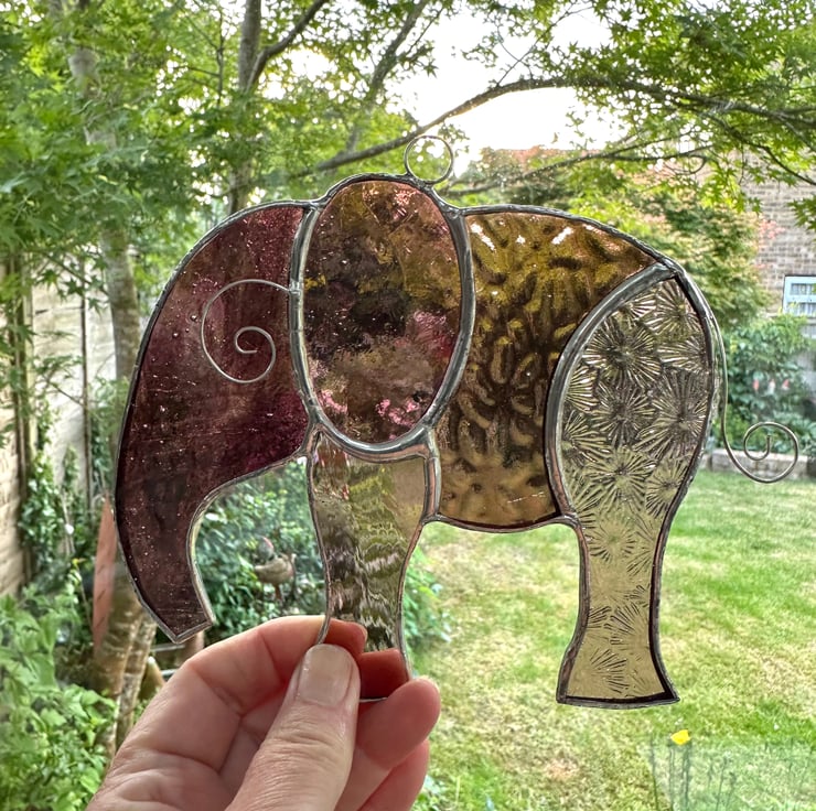 Elephant suncatcher made from beautiful stained glass by Carole’s Glass.