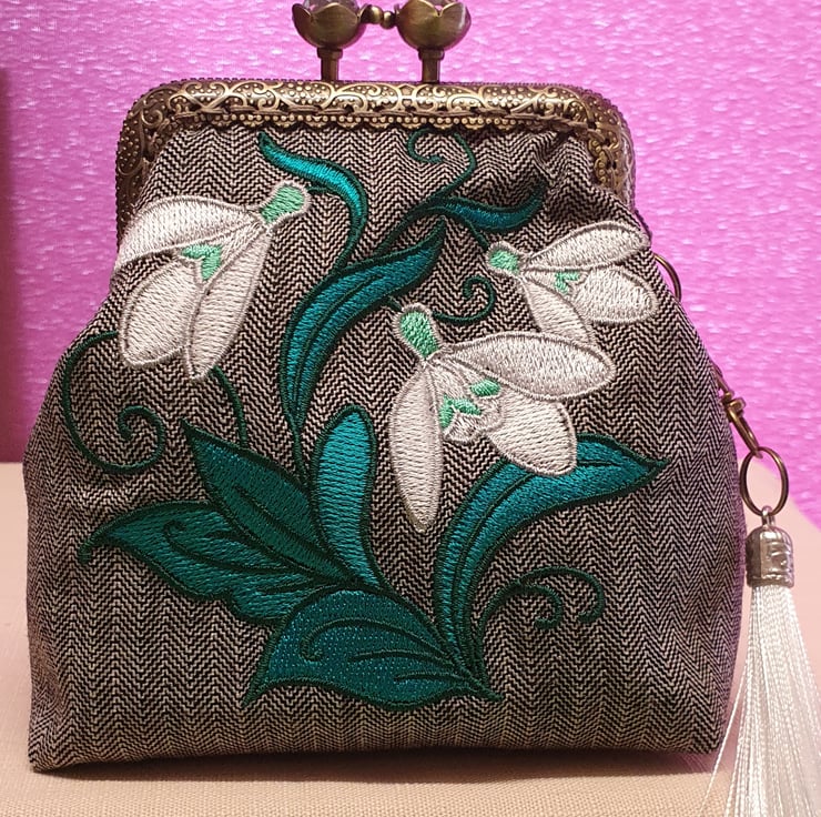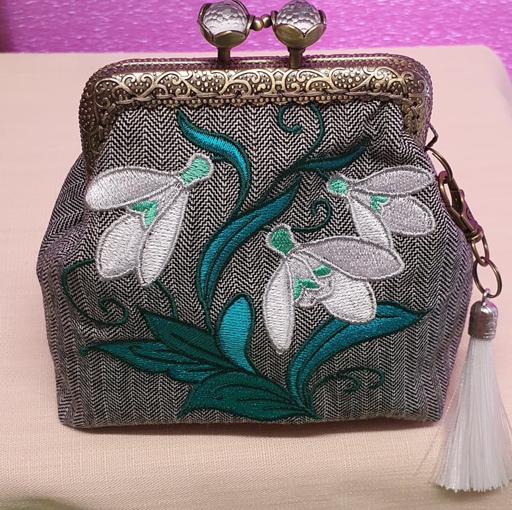 Whimsical snowdrops design purse .