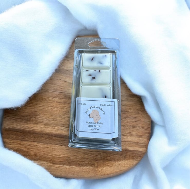 Experience the captivating allure of botanical wax melts, artfully crafted to bring the essence of nature into your home. Made from all-natural soy wax, each melt is infused with carefully selected botanicals and fragrance oil, our snap bars have five segments that give hours of fragrance, Black Orchid features an alluring blend of top notes including Ylang Ylang, Bergamot, and Truffle, adding a fresh and exotic touch. The heart reveals fragrant Orchid and rich Lotus Wood, creating a floral, woody essence. At its base, soothing Sandalwood, creamy Vanilla, earthy Vetiver, and a hint of indulgent Dark Chocolate deliver a warm, comforting finish.