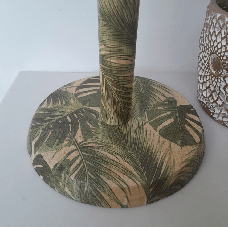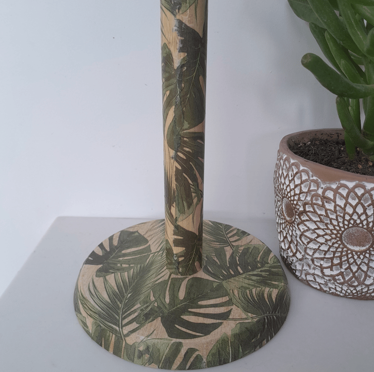 I love tropical palm leaf designs and became inspired when I discovered this beautiful design. I decided to decoupage my own kitchen roll holder and I was so in love I decided to make some more to share with the world!