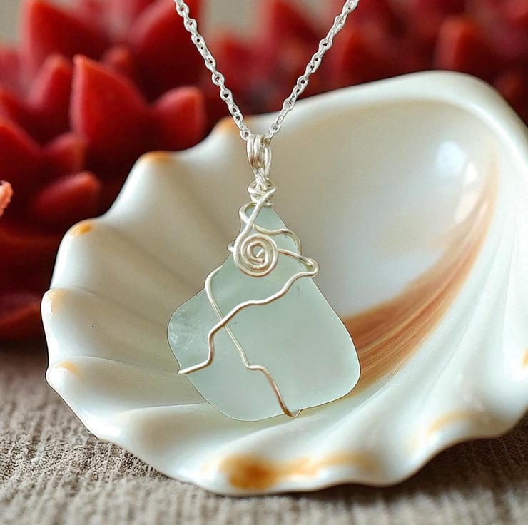 Discover the beauty of the ocean with this handcrafted Seafoam Sea Glass Pendant, sourced from the stunning Sandsend Beach in North Yorkshire. This piece of genuine sea glass is uniquely wire-wrapped in tarnish-free silver-colored wire, creating a striking focal point that hangs gracefully on an 18” sterling silver chain. Perfect for adding a touch of coastal charm to any outfit, this pendant comes boxed and is ready for gifting. Plus, enjoy peace of mind with 48 hour tracked postage for a seamless shopping experience. Embrace the waves and wear a piece of the sea!