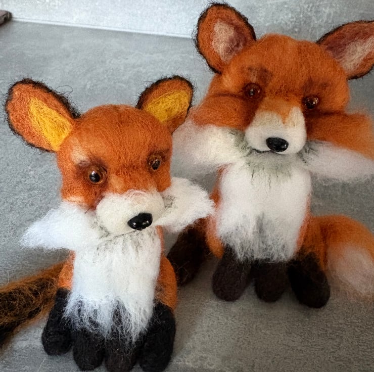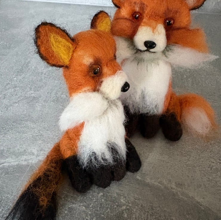 Adorable little needle felted fox couple, little mr and Mrs fox ready for a new home