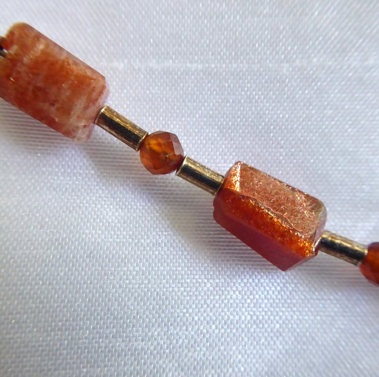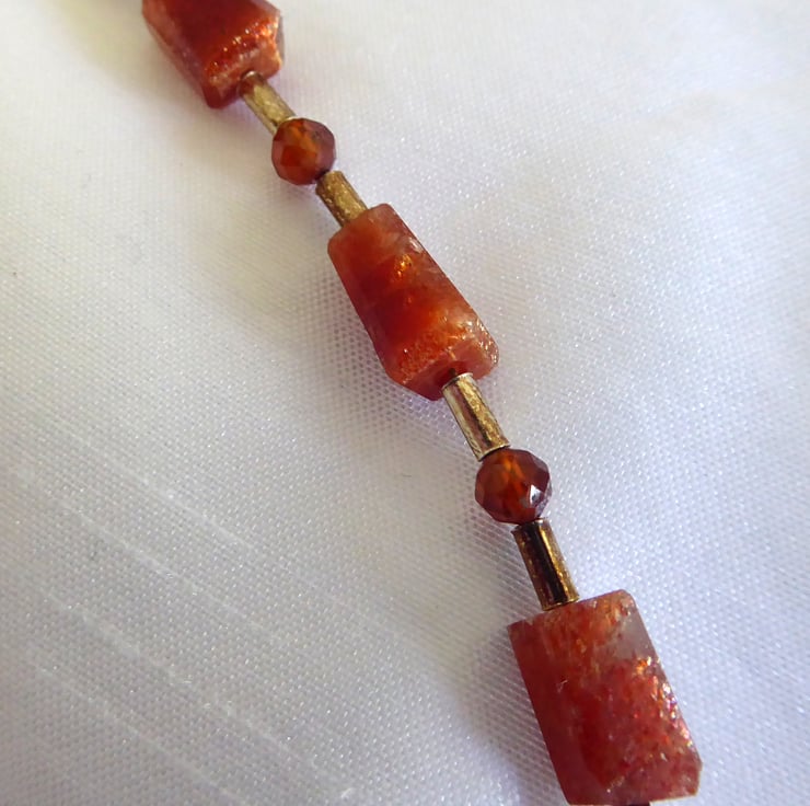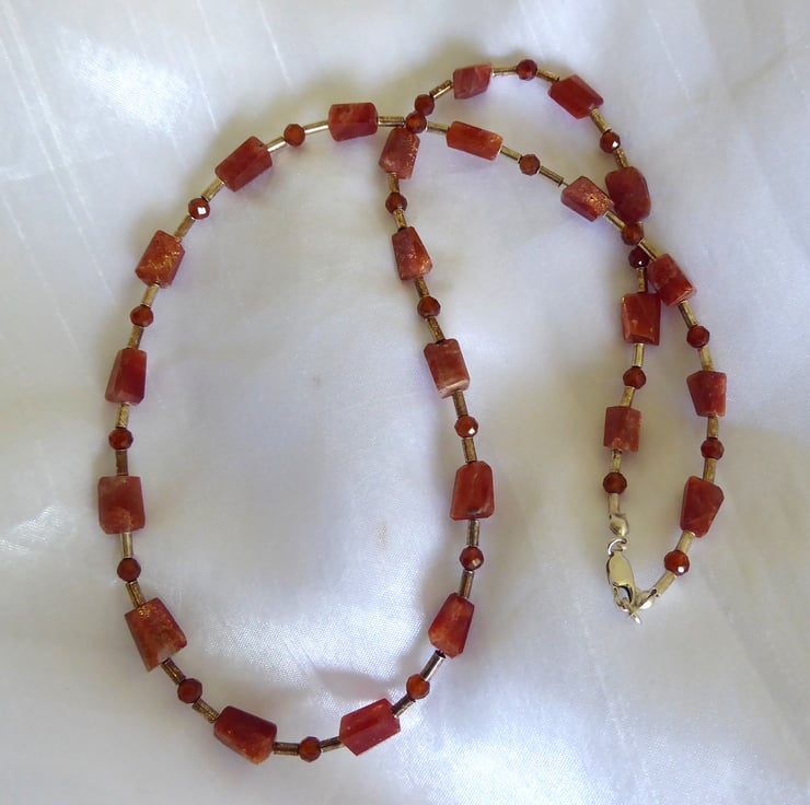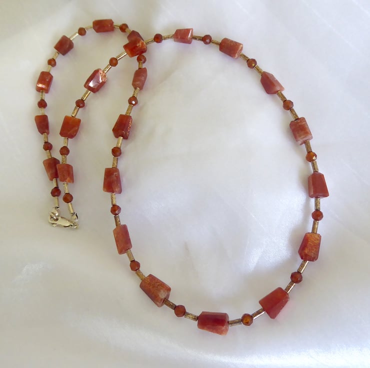 Sunstone Necklace accented with Spessartine Garnet and Sterling Silver.