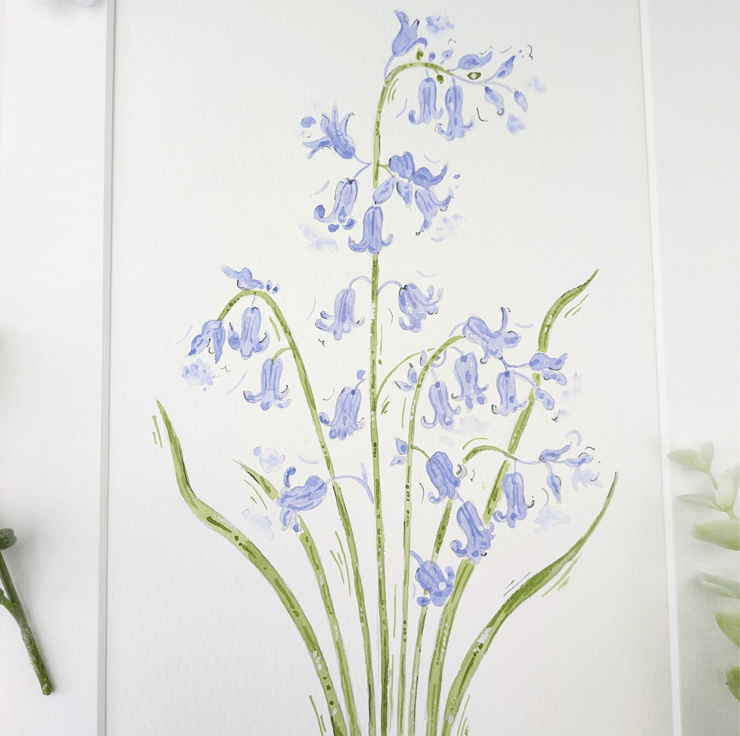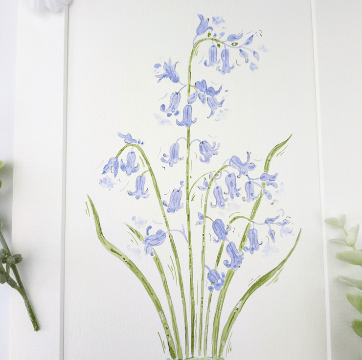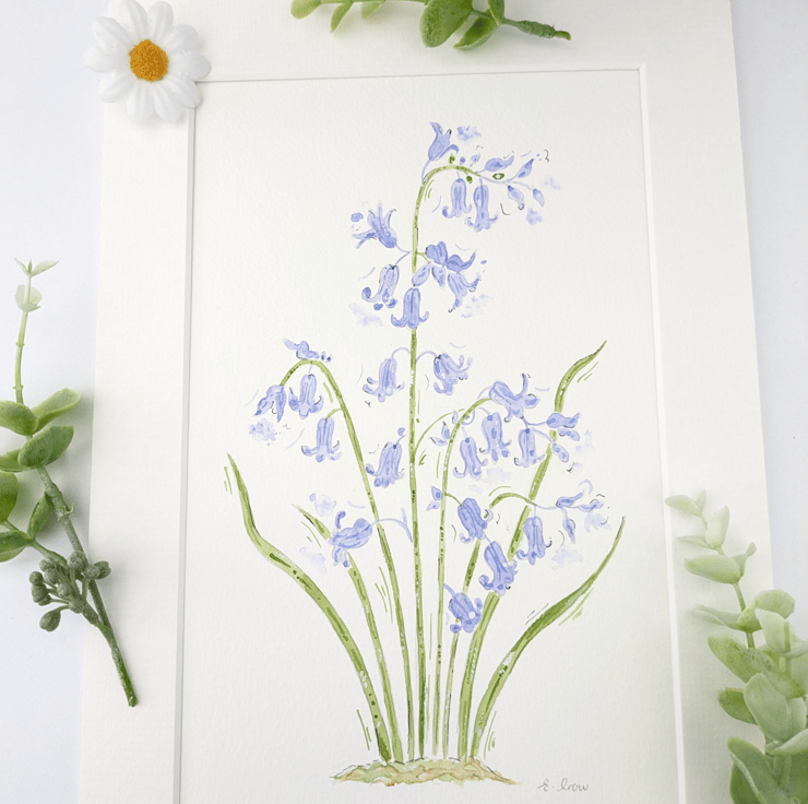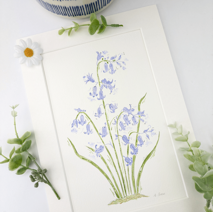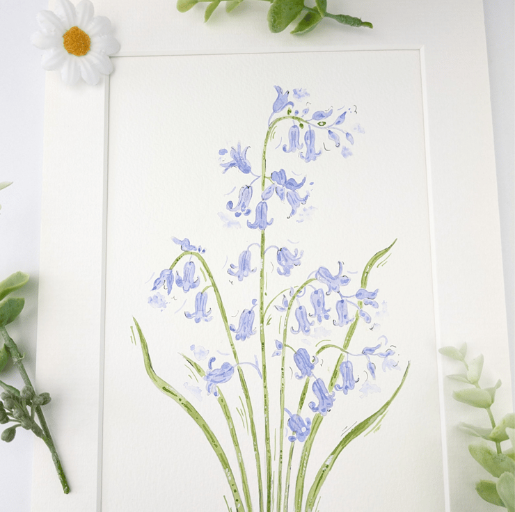 A beautiful hand-painted bluebell original watercolour painting (not a print). Painted in artist's watercolours on 140lb textured watercolour paper. Mounted in a A4 size white textured mount