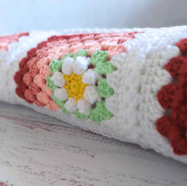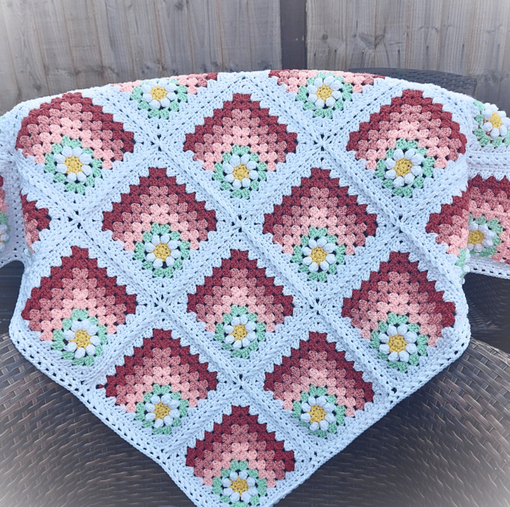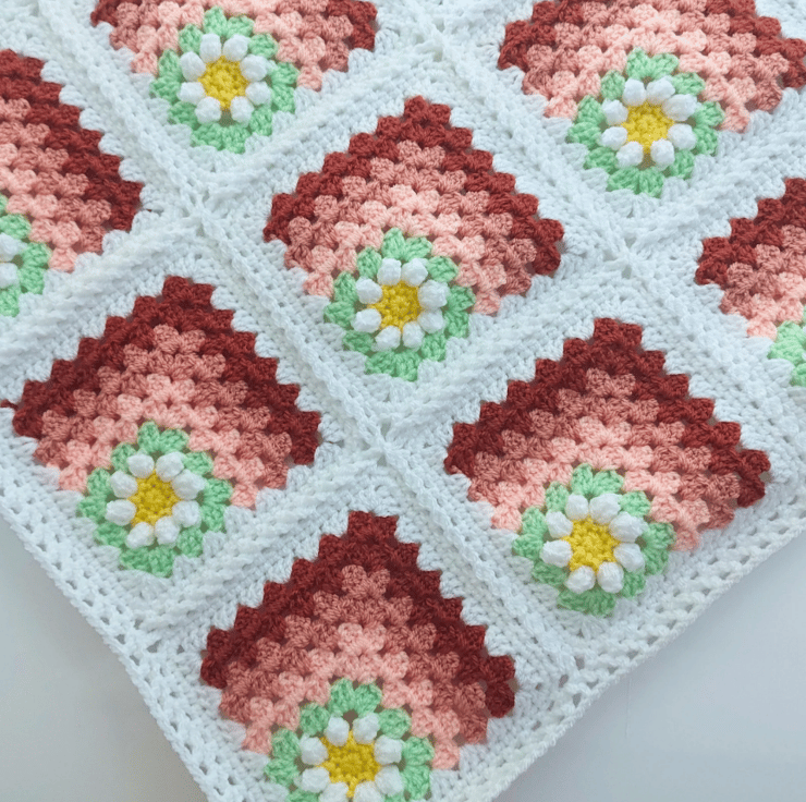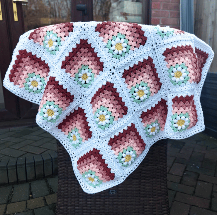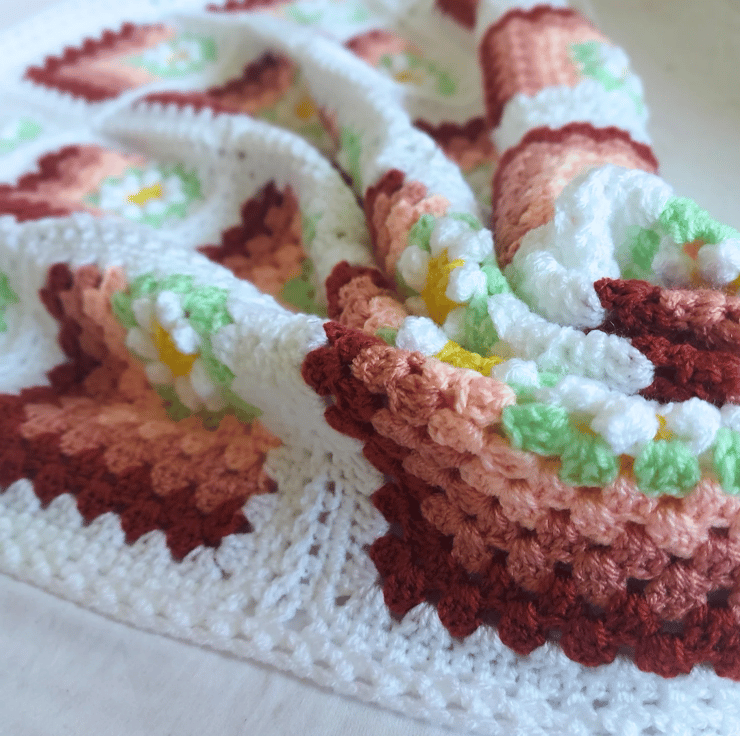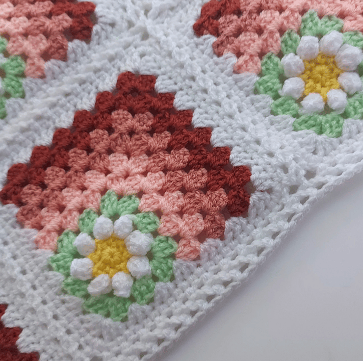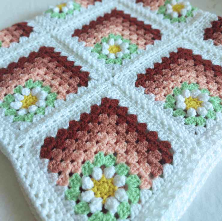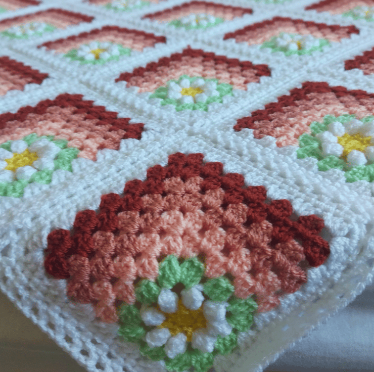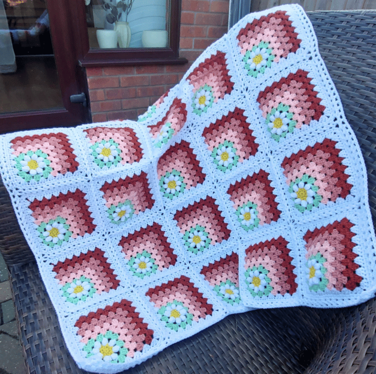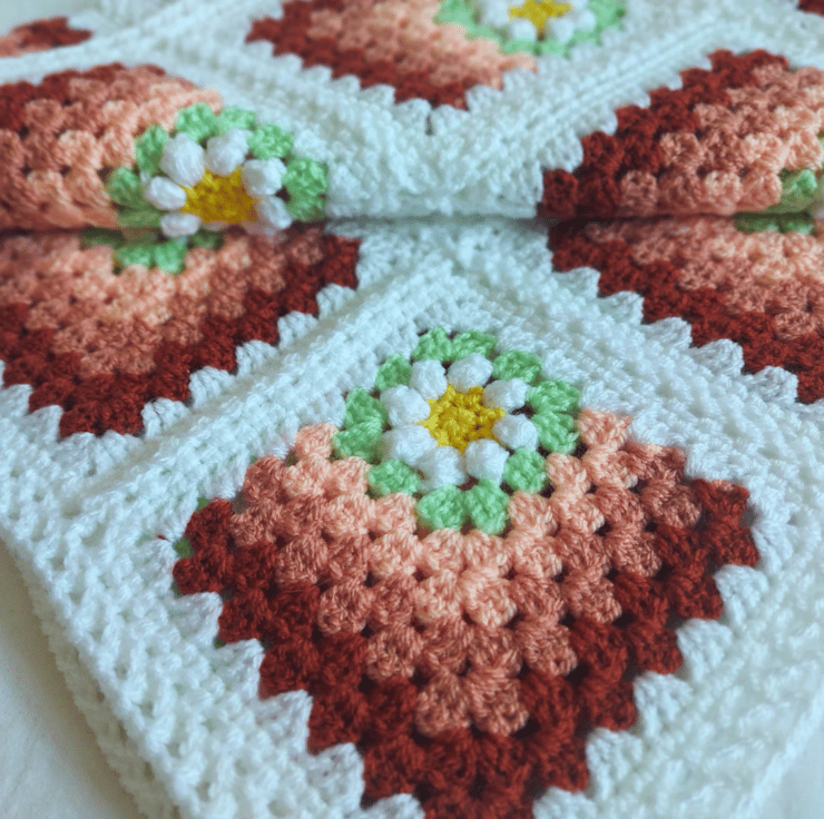 Handmade Crochet Daisy Granny Square Baby Blanket – Peach Tones – 80cm square