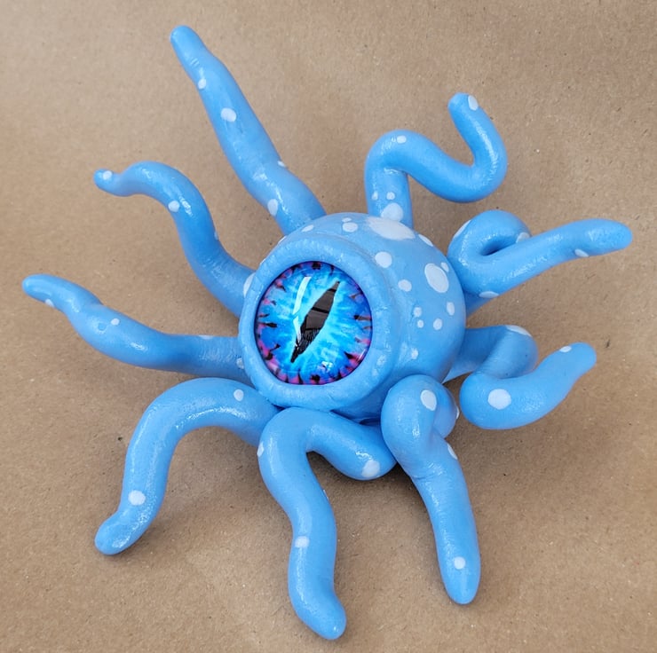I recently discovered the joys of creating with air dry foam clay, and make whatever the clay whispers to me. On this day it said I want to be a one eyed, many tentacled entity.