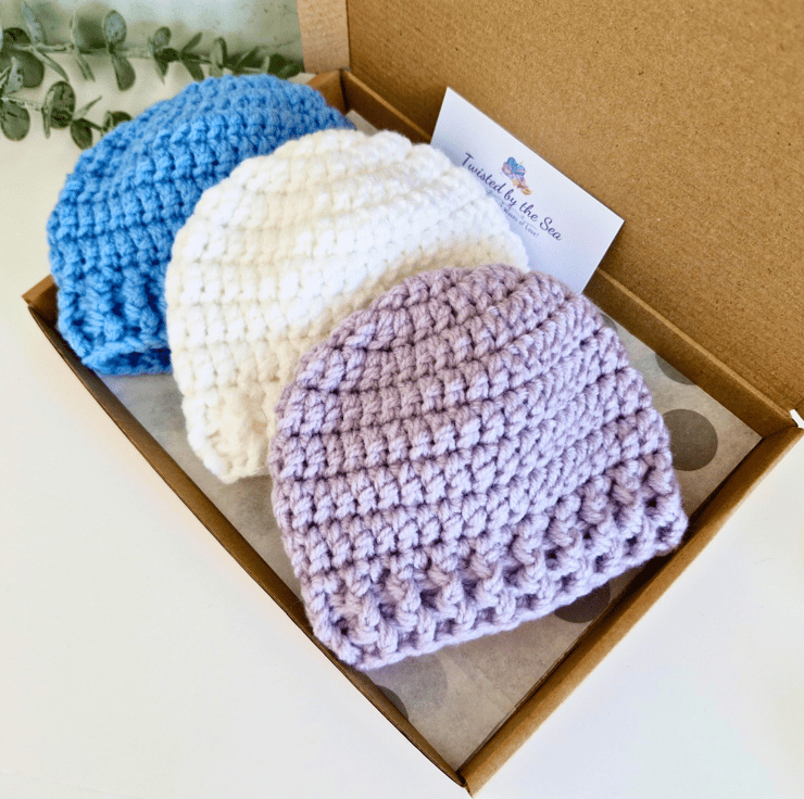 Welcome to Twisted by the Sea – home of beautifully handmade crochet baby gifts including baby booties, hats and cardigans. Each item is thoughtfully crafted using soft Stylecraft Special DK yarn, perfect for new arrivals, baby showers, and keepsake gifts. All made from my coastal home in Lincolnshire.