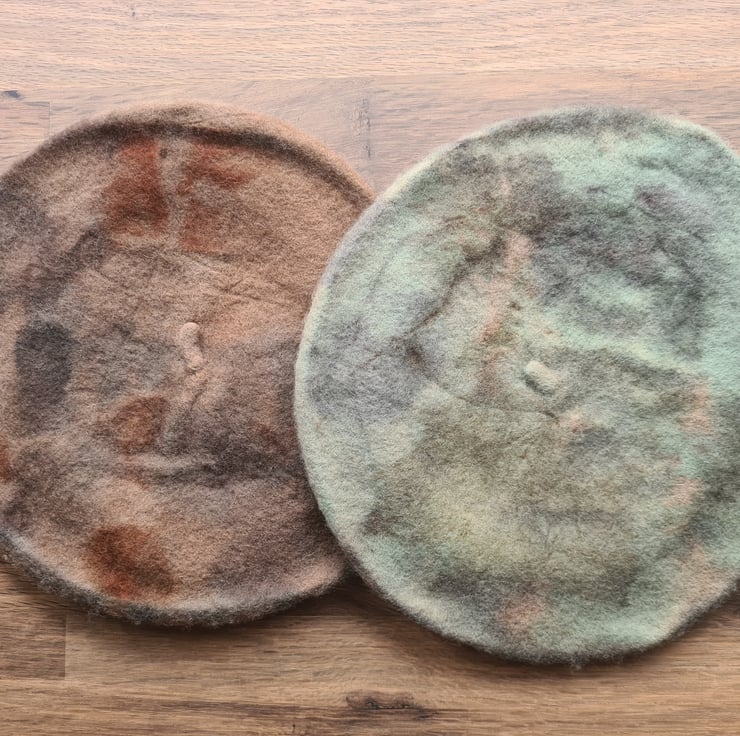 Inspired by India Flint and Nicola Brown - I combined wool, leaves, water, heat & iron to create beautifully eco printed berets in various base colours. Please check out my other listings for more colours.
