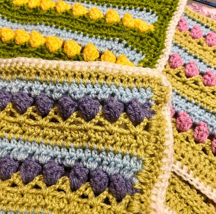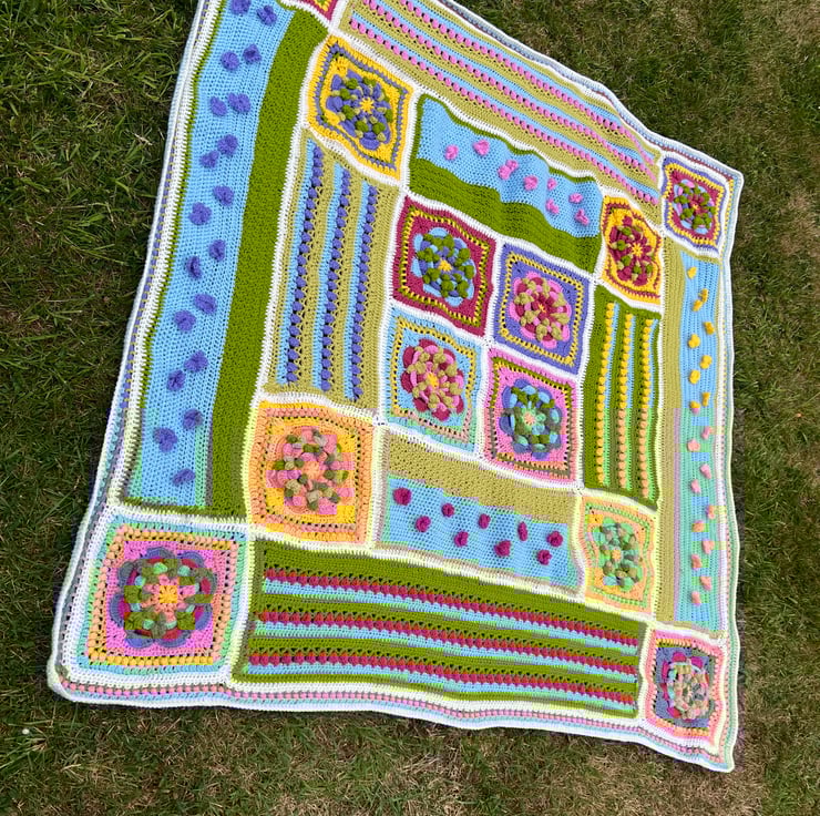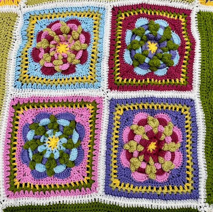Spring in Bloom Crochet Blanket – Colourful Square Throw