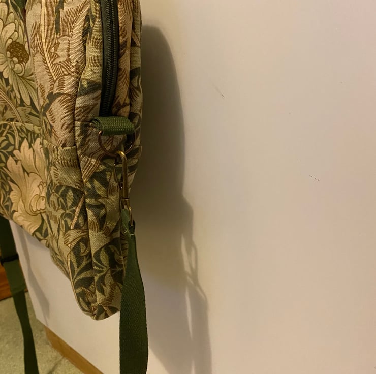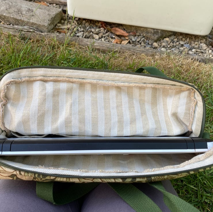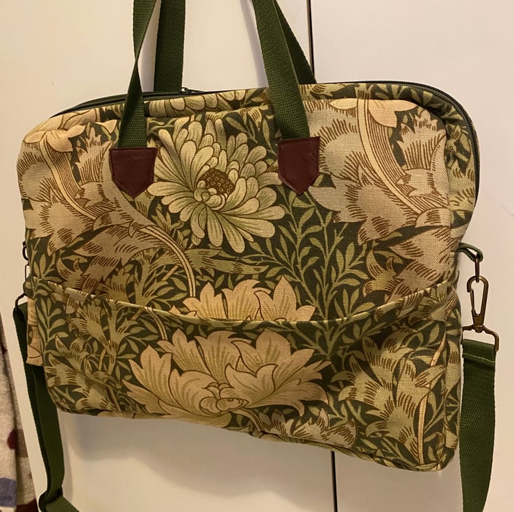 Attractive handmade laptop bag in William Morris ‘Lily’ heavy linen fabric.