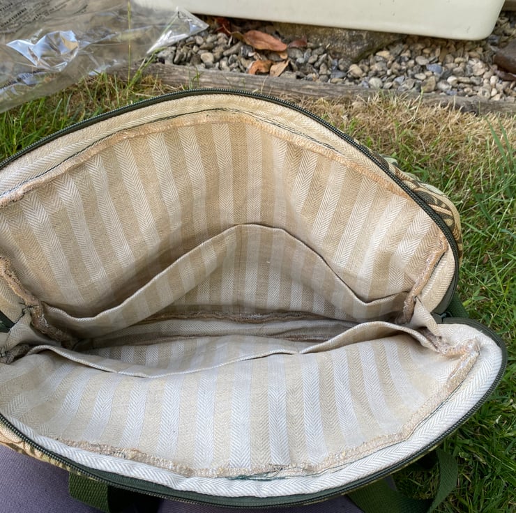 Features: protective padding, cotton webbing handles and shoulder strap, real leather handle tabs, striped herringbone lining, antique brass metalware, chunky zip and shoulder pad. 7 pockets in total. All internal seams finished with an overlocker.