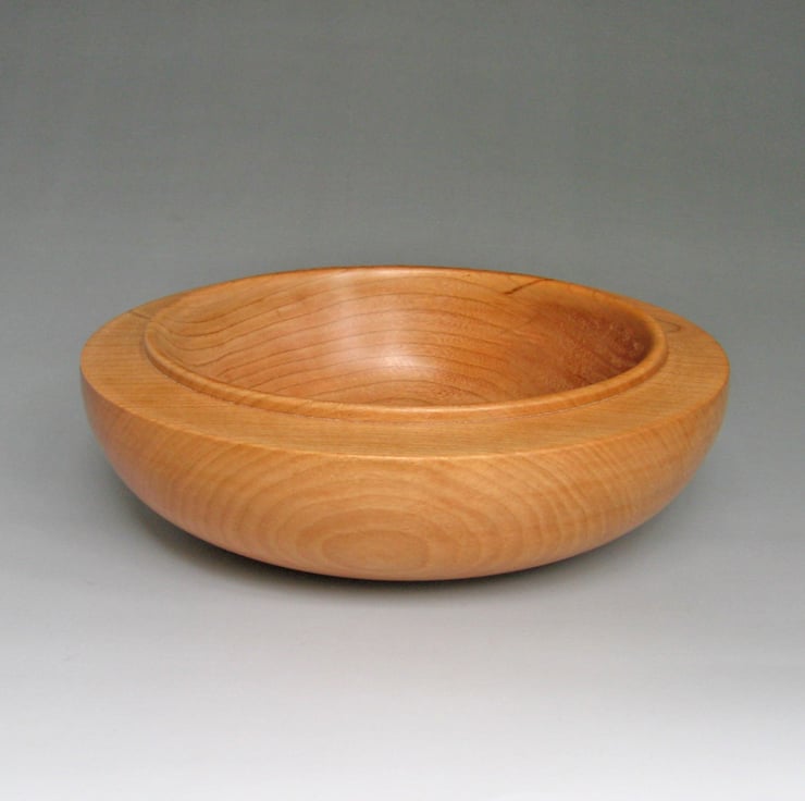 This simple piece has been turned from cherry. It has been given a satin finish that gives a warm gentle glow. To maintain the finish it just requires a sparing application of a suitable wax.