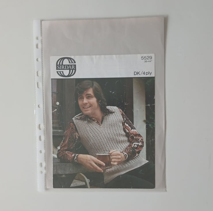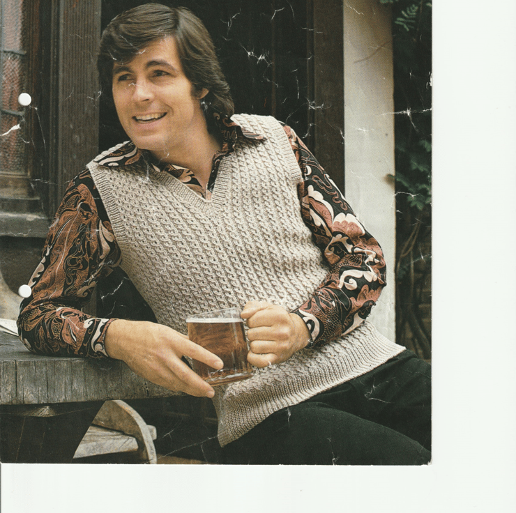 This hand knit PATTERN is for a man's tank top. To fit chest: 91 to 112 cm or 36 to 44 inches. Knitted in double knitting yarn using 3 mm and 3.75 mm knitting needles.