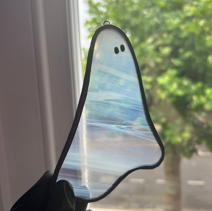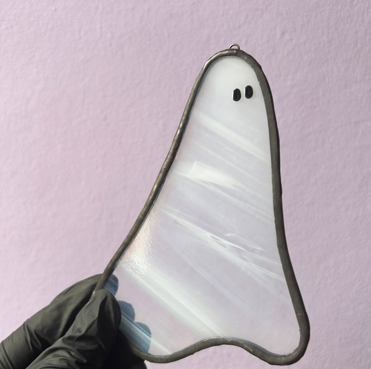Say hello to your new spooky sidekick. This stained glass ghost is a signature Heather Makes Glass design. Made from high-quality glass, each ghost is totally one-of-a-kind—no clones here, just cute creeps with personality!