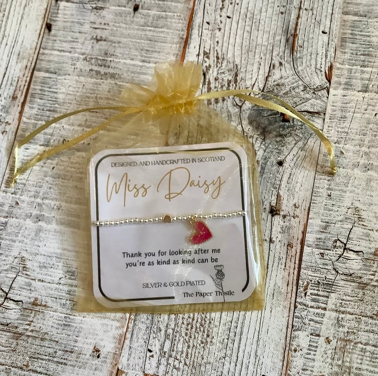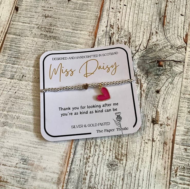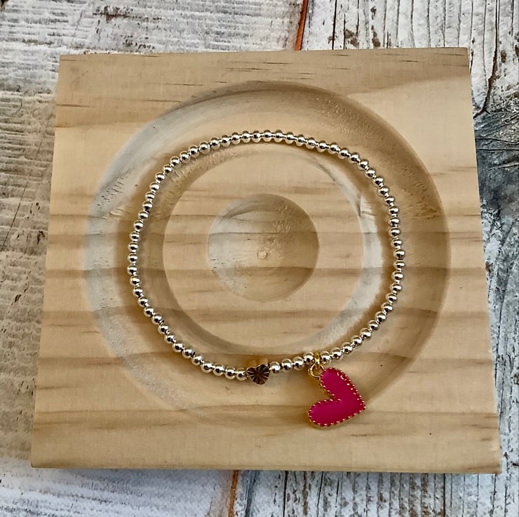 Stretch bead bracelet with signature gold heart and charm, this pretty bracelet has a coloured enamel heart. Choice of colours available.