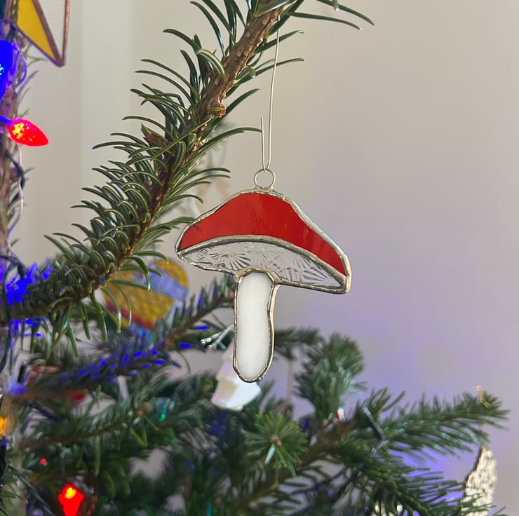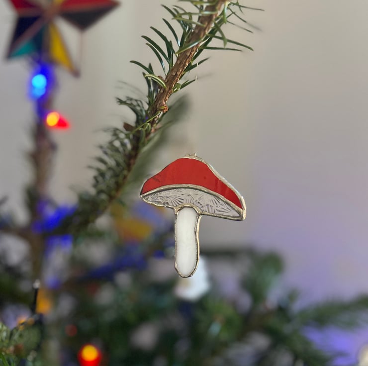 Add a touch of brilliant colour to your home with our fun and vibrant stained glass sun catcher mushrooms - ideal for the Christmas Tree - handmade in the West Country.