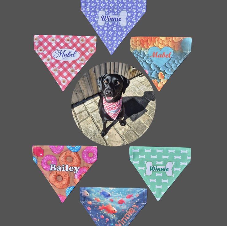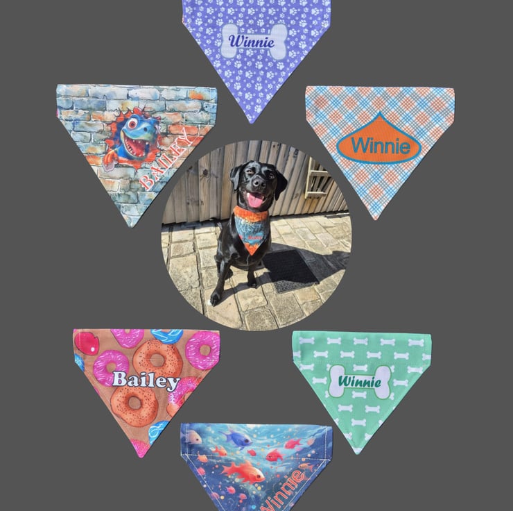 The bandanas are designed to slip over your dogs existing collar and come in three sizes, small, medium and large, see below for measurements.
