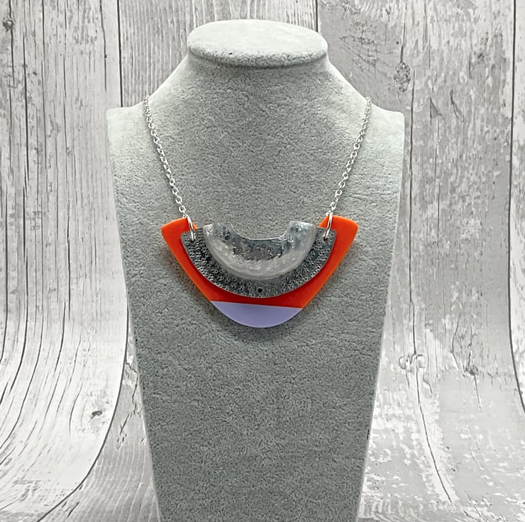 Recycled Aluminium Drink Can Base, Orange Lilac Acrylic Shape Necklace Pendant