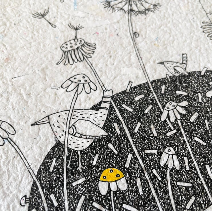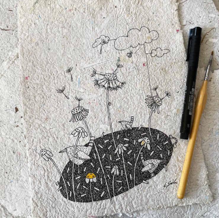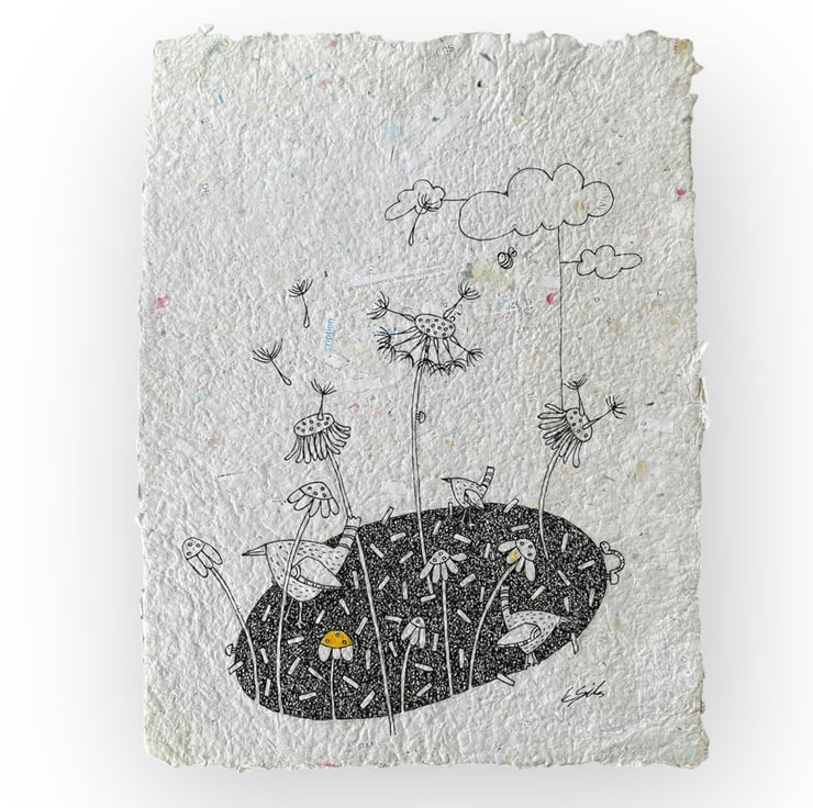 All my artworks are original on handmade paper made by myself from recycling old bills, letters etc