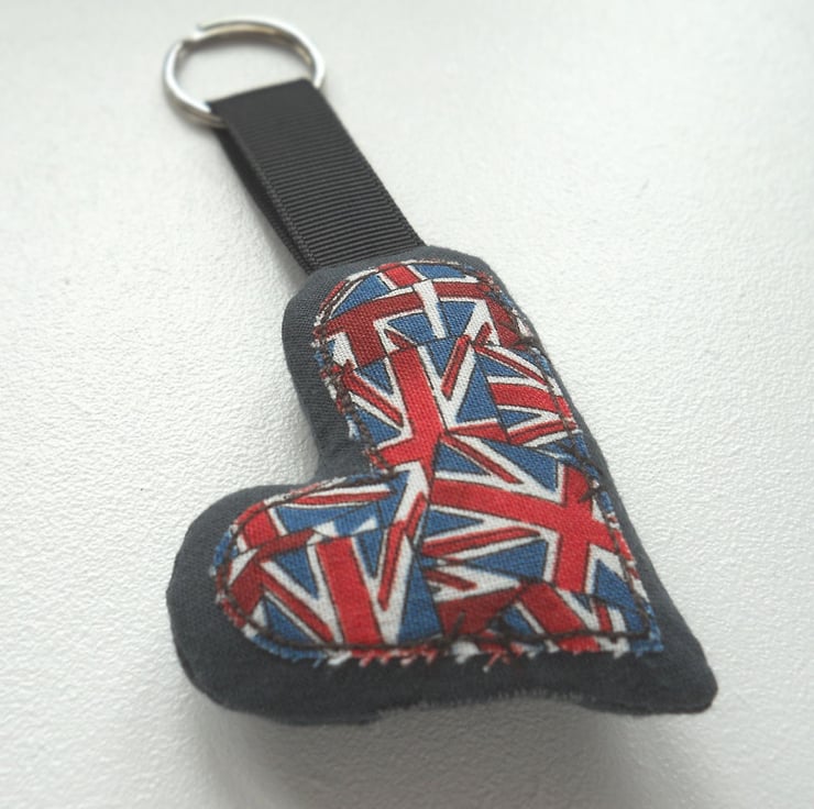 applique embroidered heart keyring key fob hanging decoration UNION FLAG