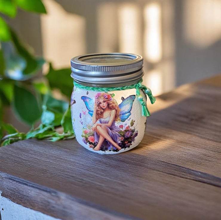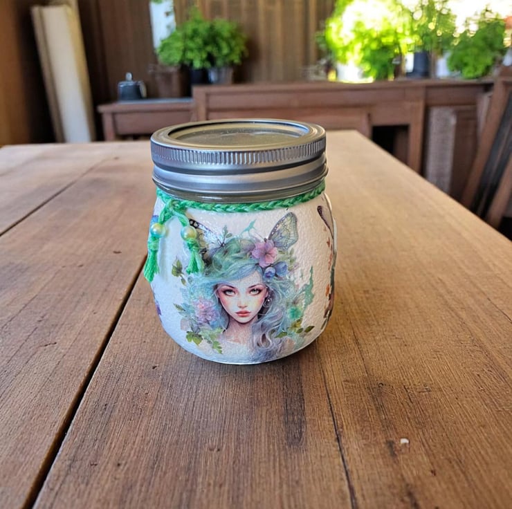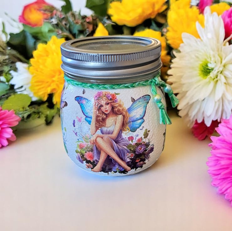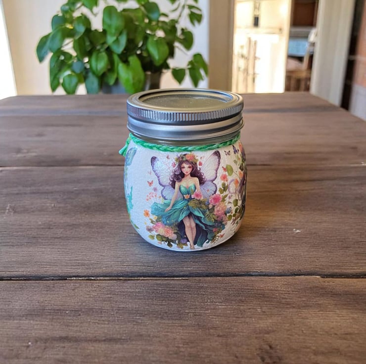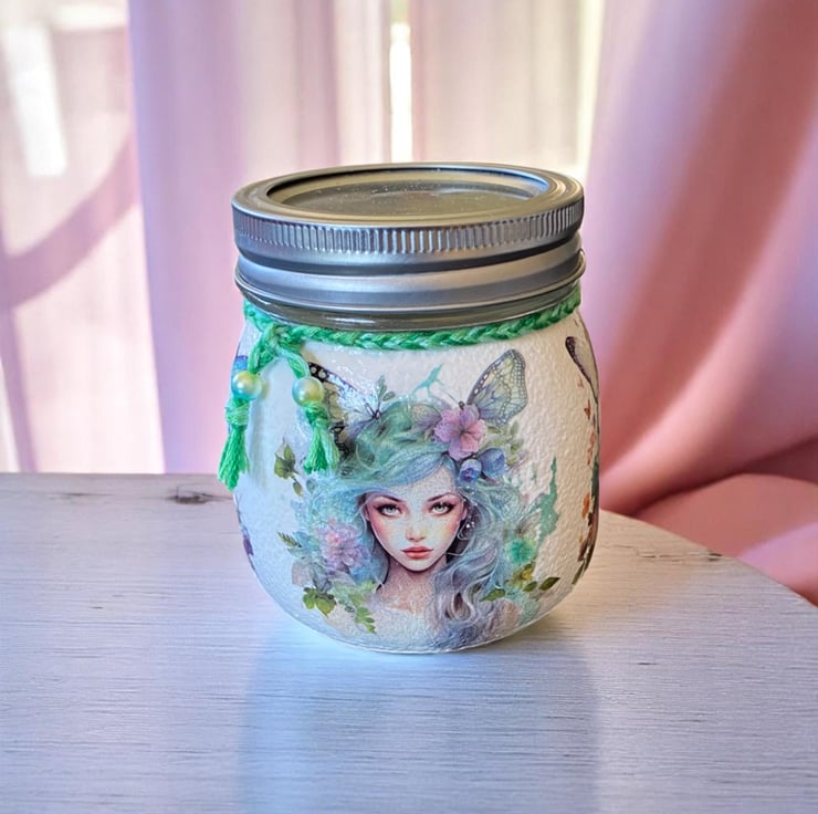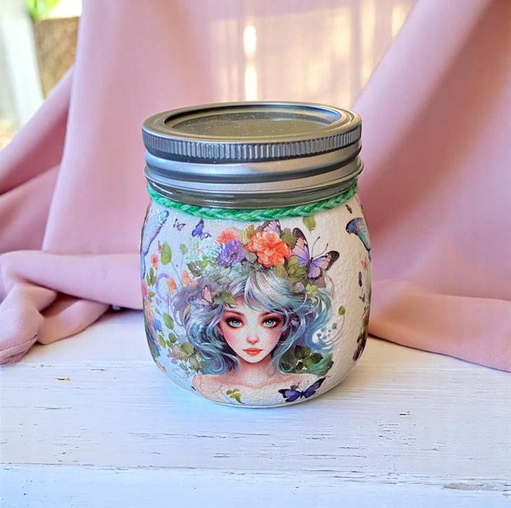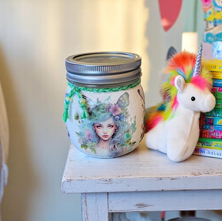 This lovely 250ml jar is just the right size for your daughter to keep her little trinkets or treasured collectables safe. It features a secure screw-top lid and has been painted white and beautifully finished with 4 different charming fairy illustrations.