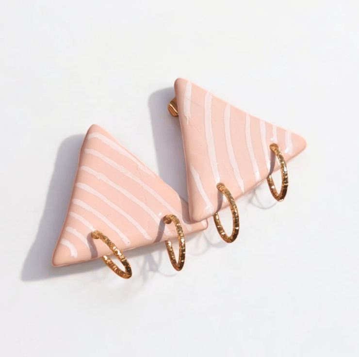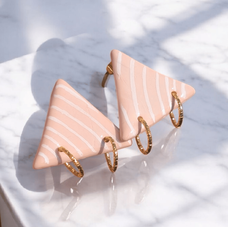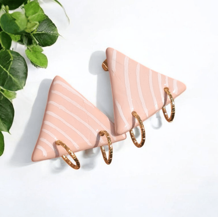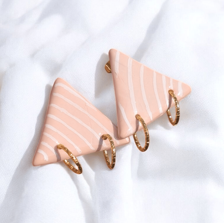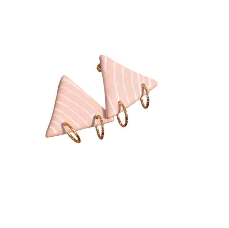 Triangle Hand painted Tribal pattern polymer clay Earrings with earring post