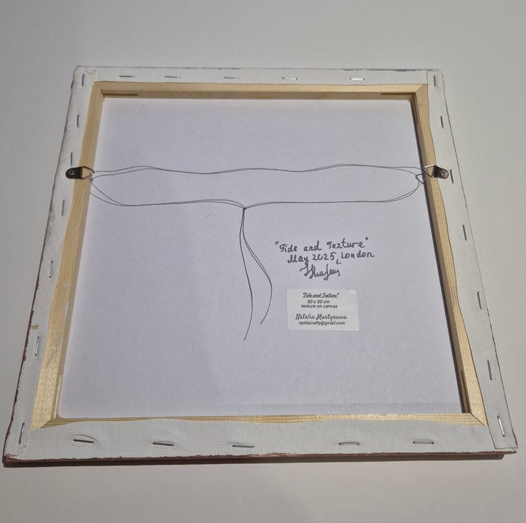 - Materials: Cotton canvas, texture paste, acrylic paints, gold patina, satin varnish