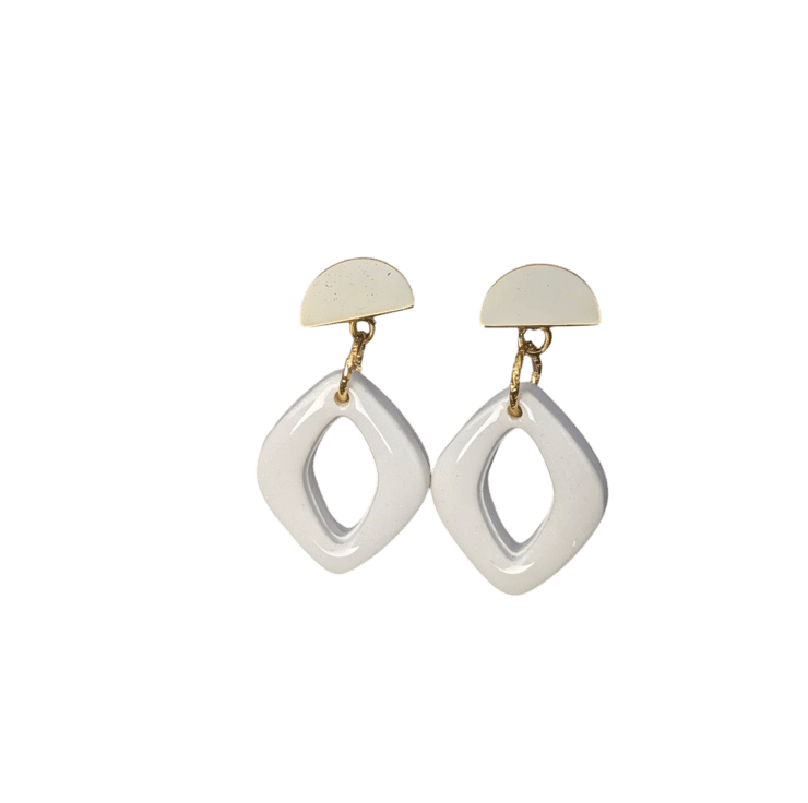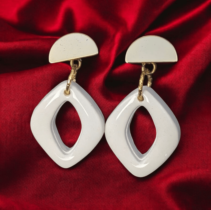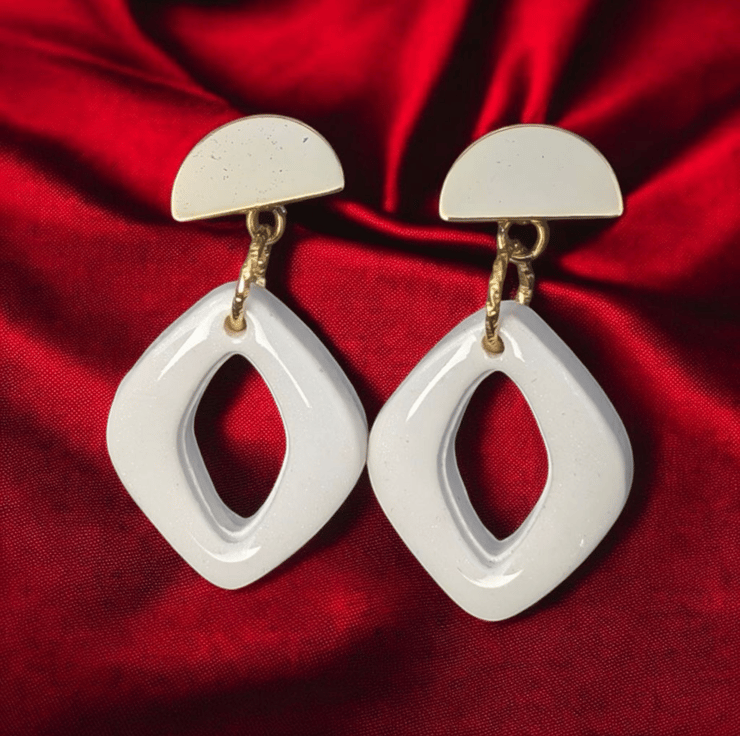 Off white Diamond Shaped Dangle, handmade polymer clay Earring