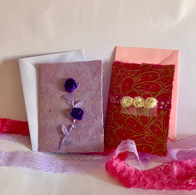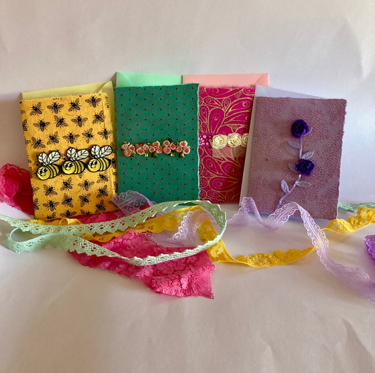 This is a set of 4 pretty original handmade cards suitable for many occasions.