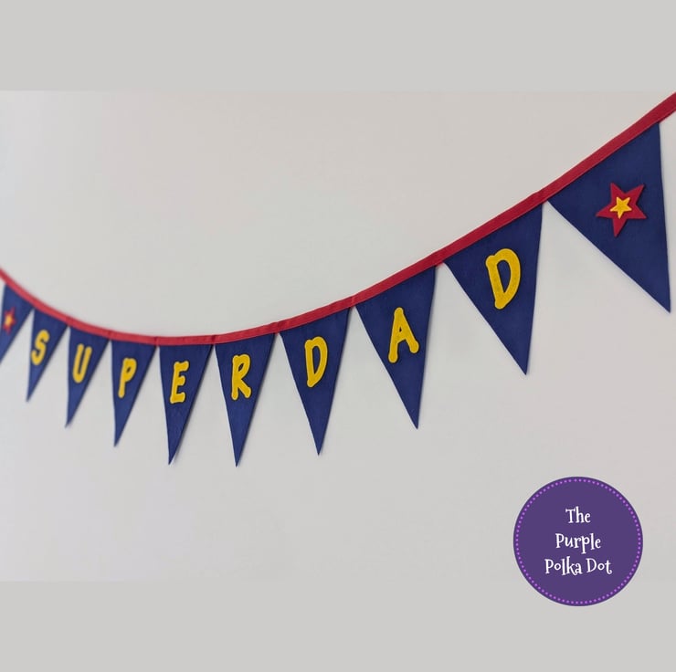 Handmade felt Father's Day bunting, Superdad banner, felt decoration for Dad