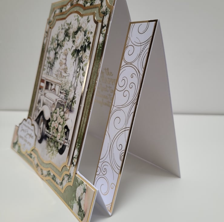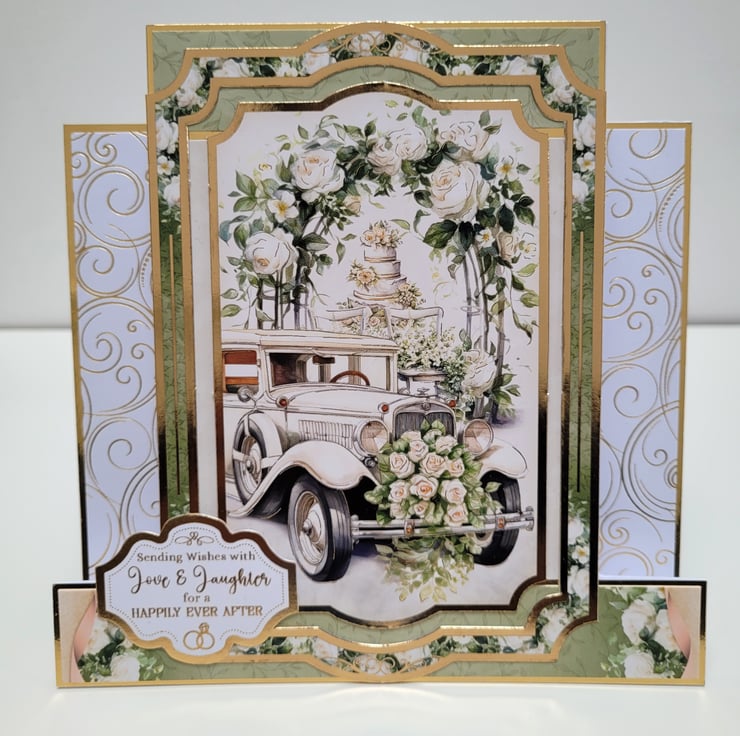 The gorgeous white, cream, ivory and green colour tones have been complimented with gold mirror card and gold accent foiling which carries through to the sentiment on the front of the card, as well as the gold embossed sentiment on the card insert.