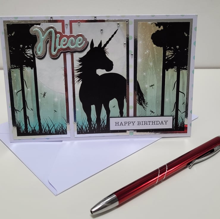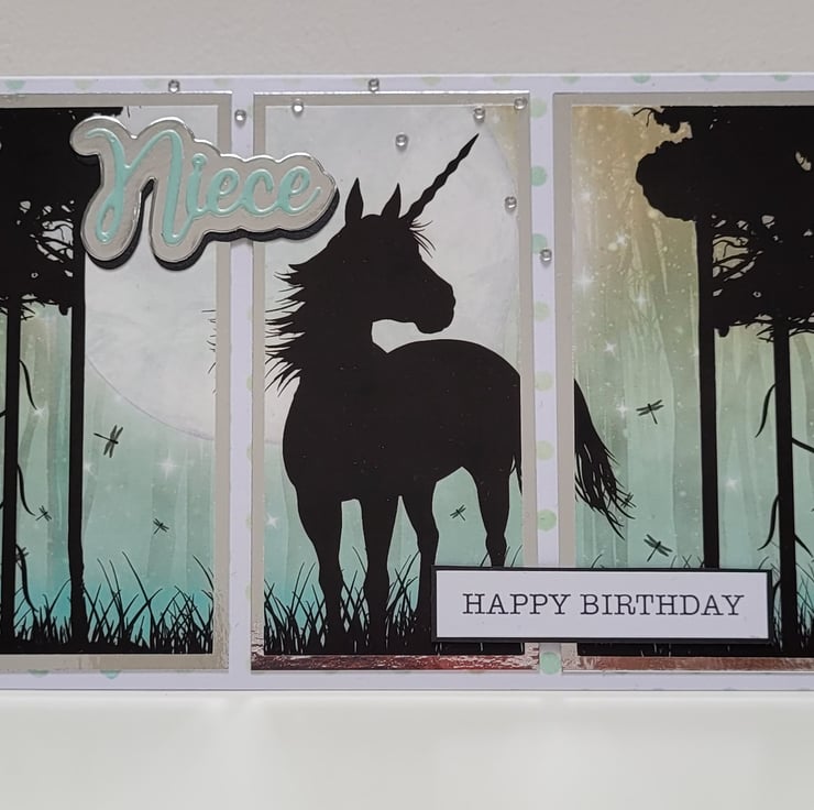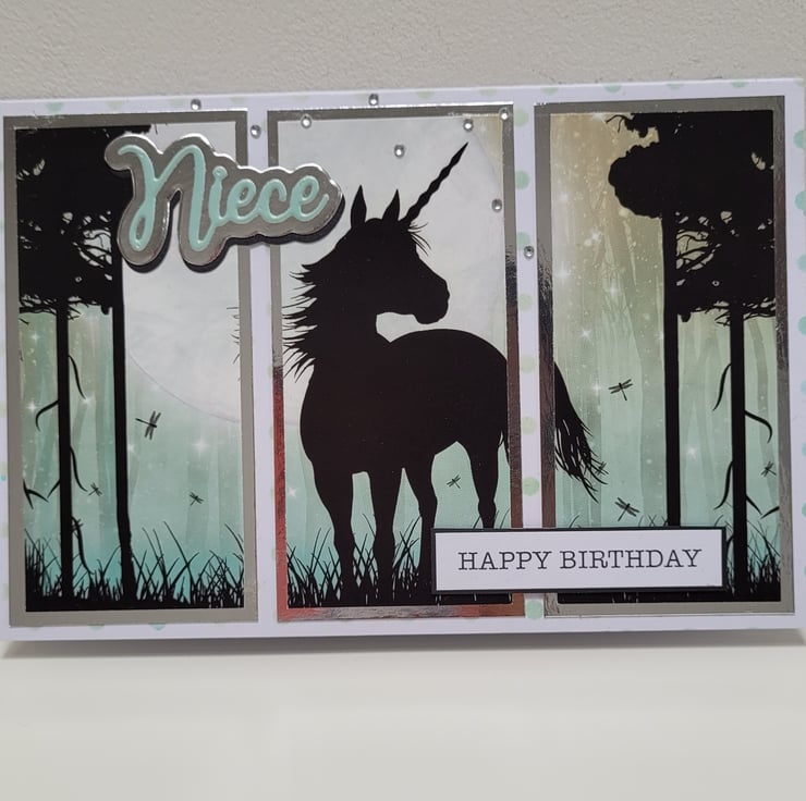Niece Birthday Card - Magical Forest Unicorn Silhouette Happy Birthday Card