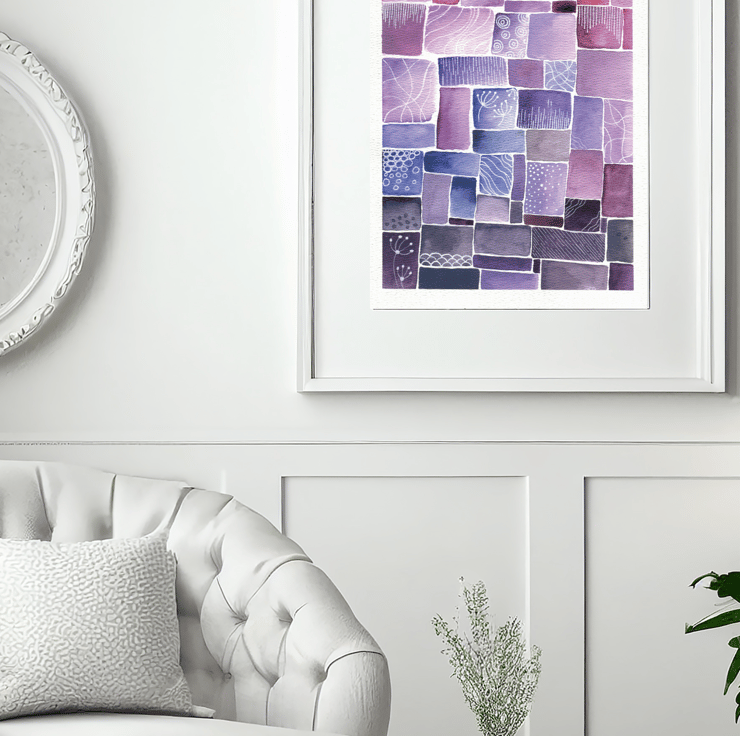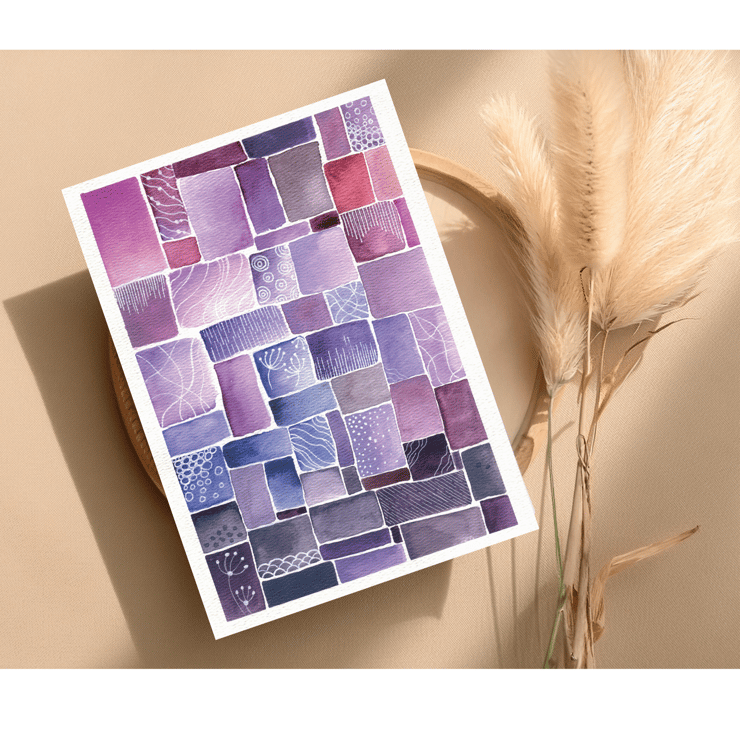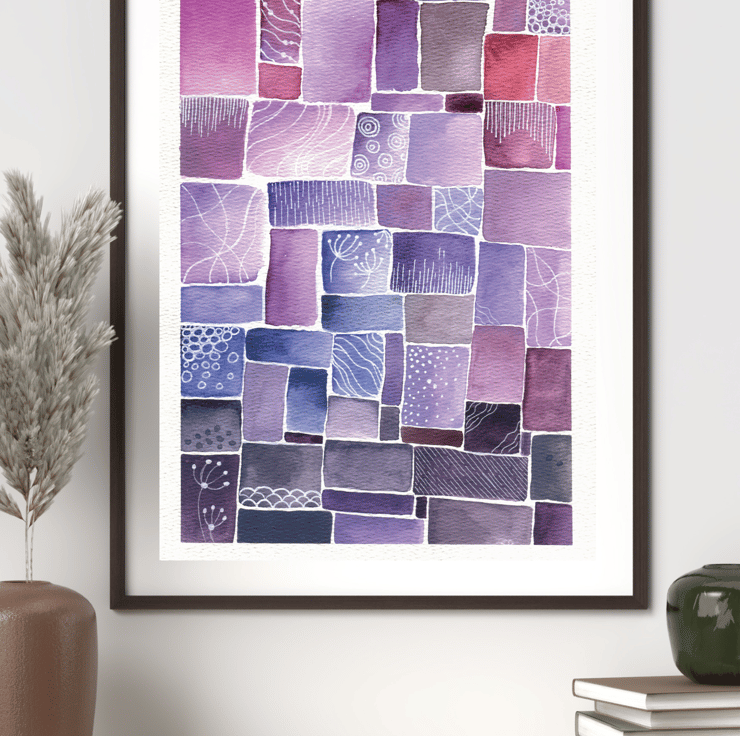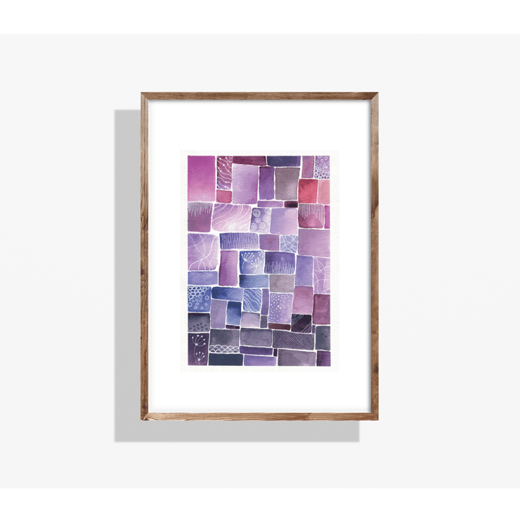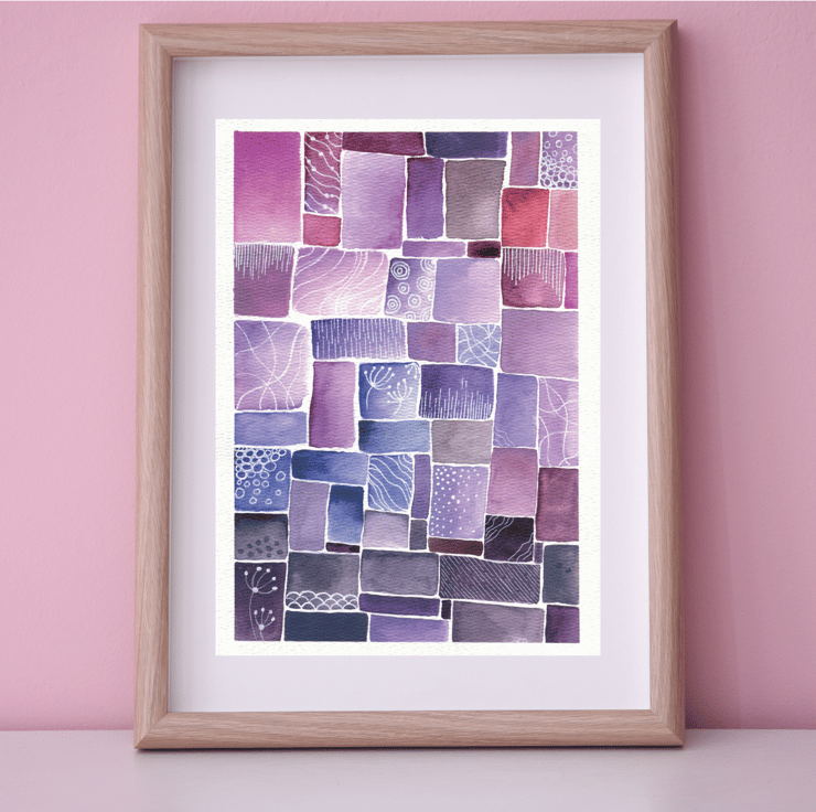 Tones of Purple Abstract Watercolour Squares - Fine art Print