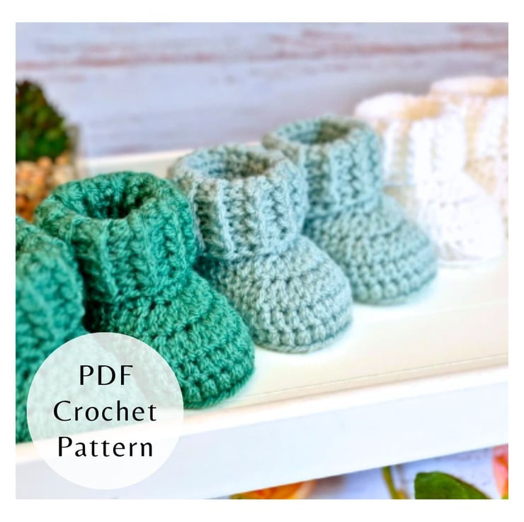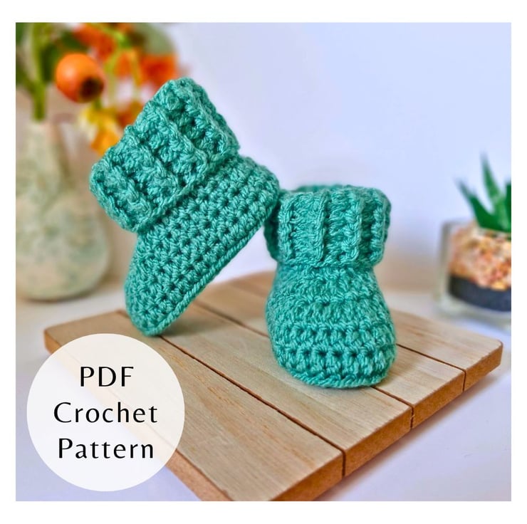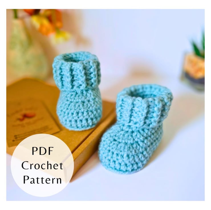 Ridged Cuff Crochet Baby Booties Pattern – US Terms