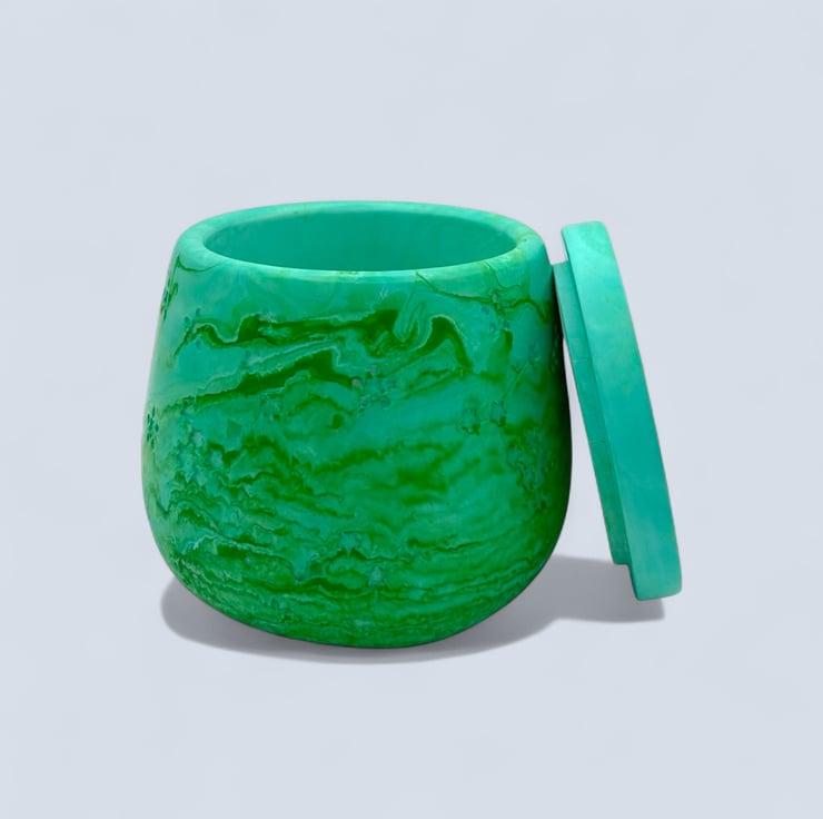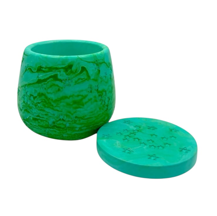 It is perfect for storing your keepsakes, trinkets, jewellery, or small treasures. Additionally, it can be used as a candle jar for tealights or small pillar candles; the lid can then double as a coaster to protect your surfaces from heat. The beautiful unique marbling effect makes each trinket pot a unique piece of art, making it an ideal gift for a special person or a lovely treat for yourself.