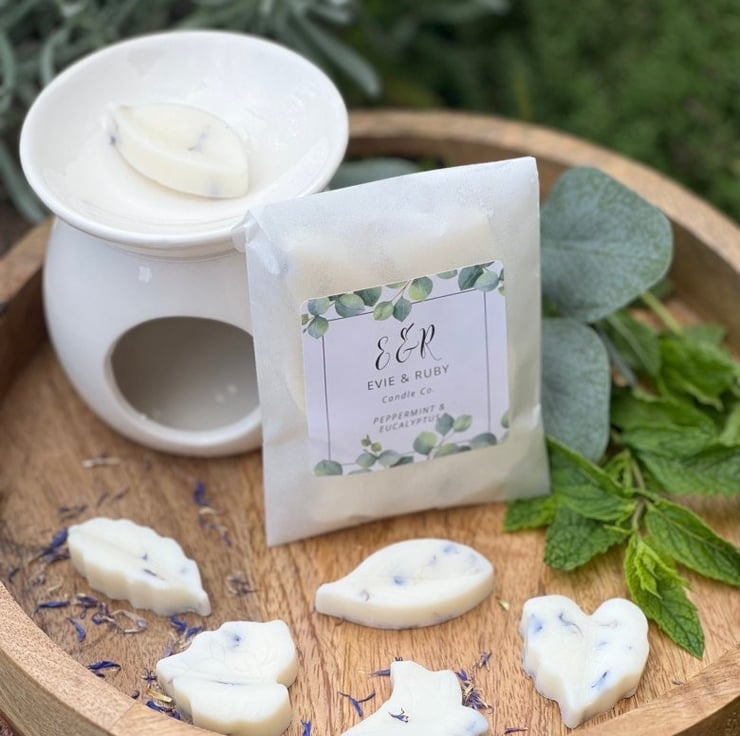 A pack of 6 leaf shaped luxury wax melts made from vegan friendly soy wax. These melts are highly scented and contain dried botanicals to give them a beautiful appearance in your burner.