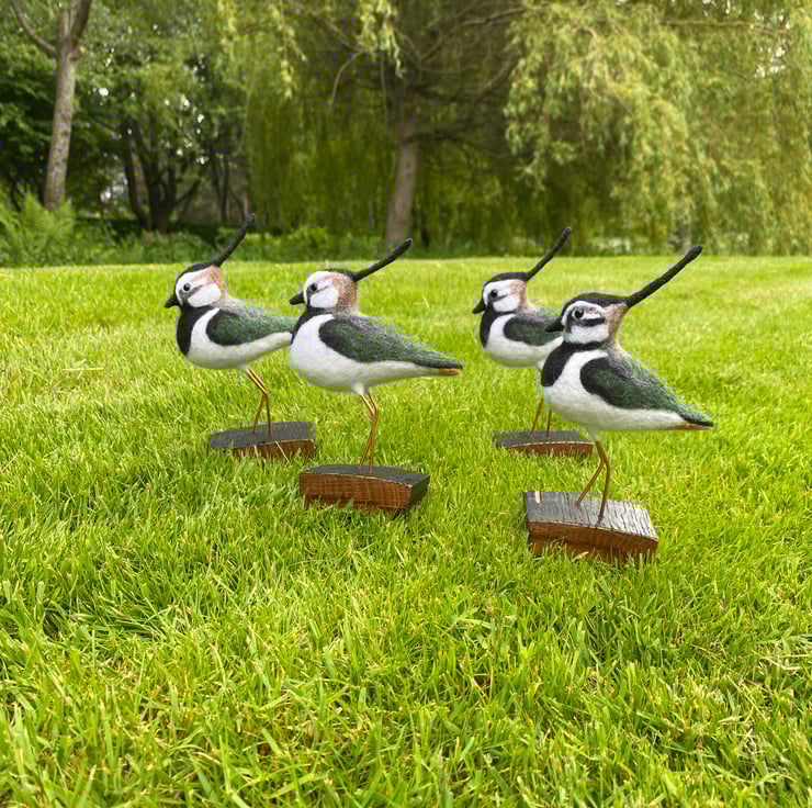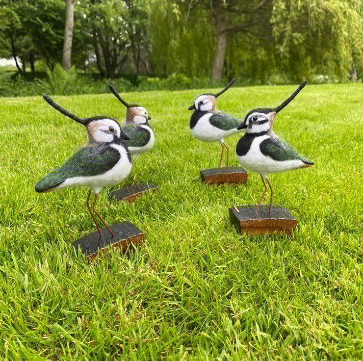 These beautiful Lapwings (locally known here in the Highlands as Peesies!) are hand felted from soft wool, using a single felting needle.