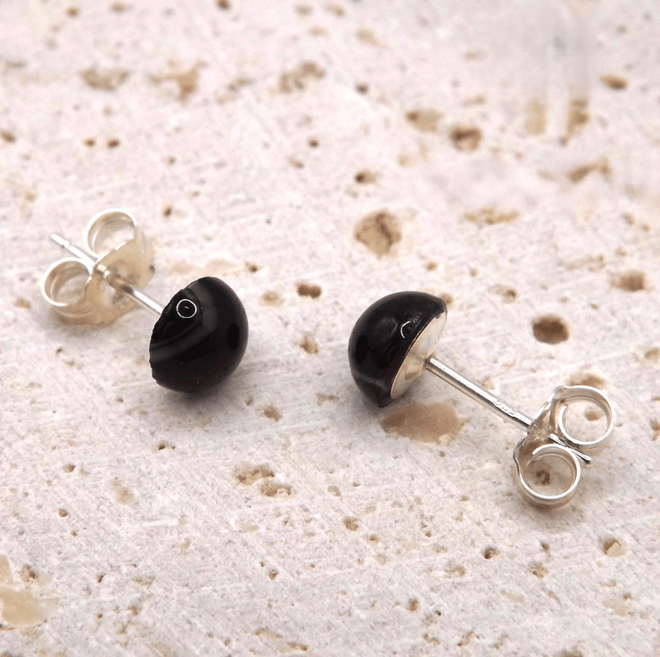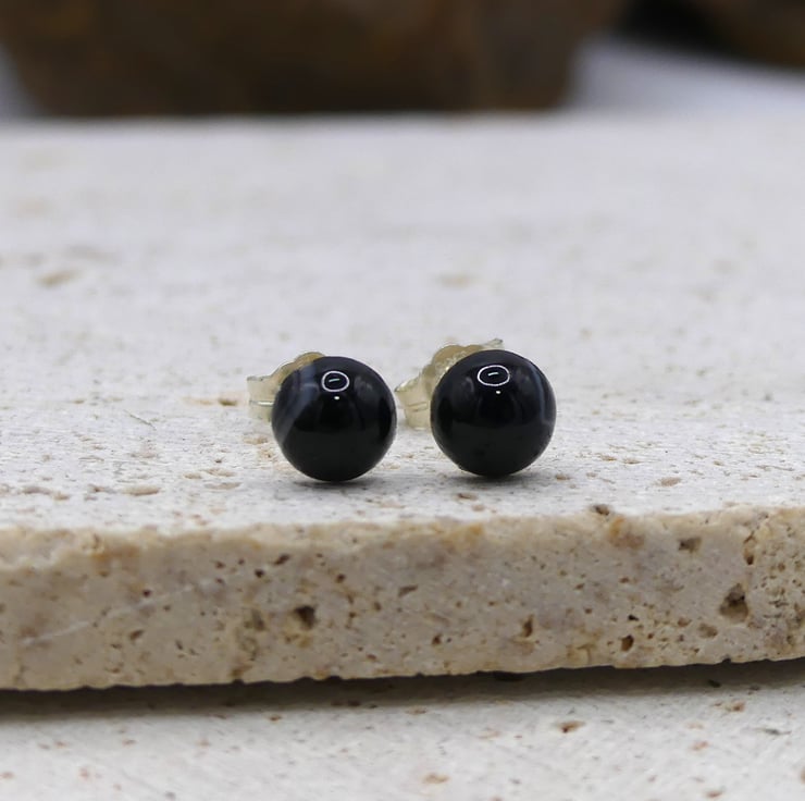 Natural Black Banded Agate Cabochons 6mm. Hardness of 6.5-7 on the Mohs scale.
