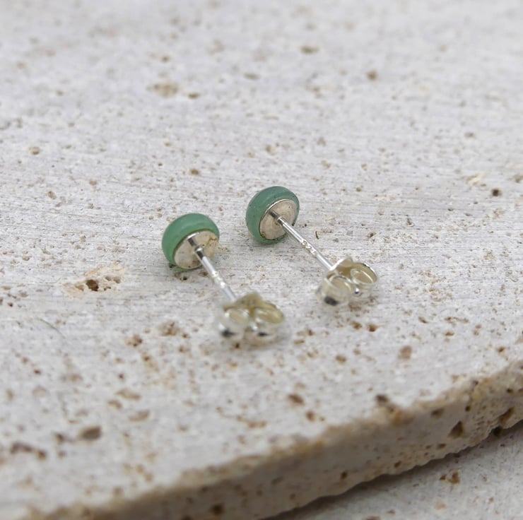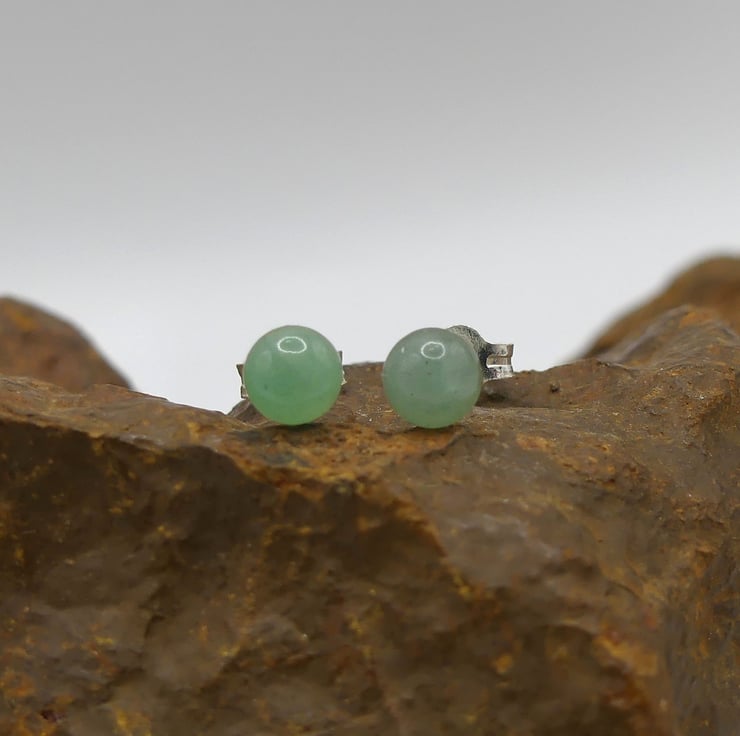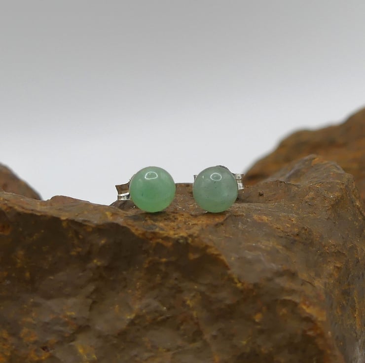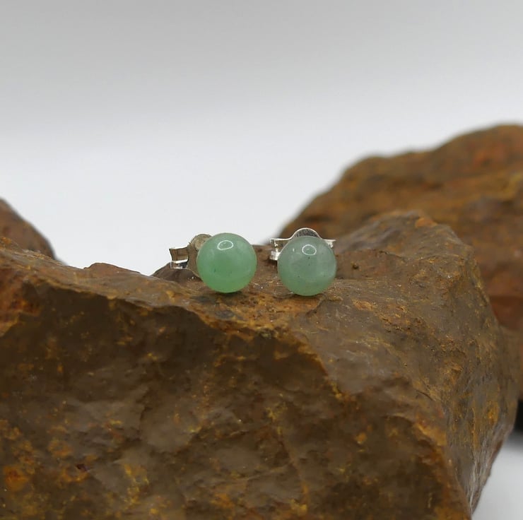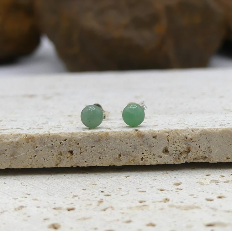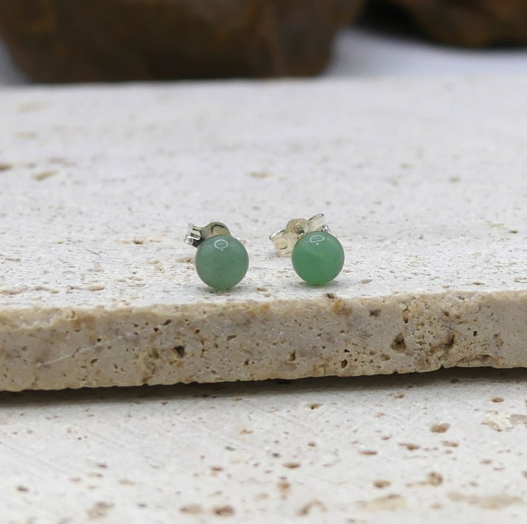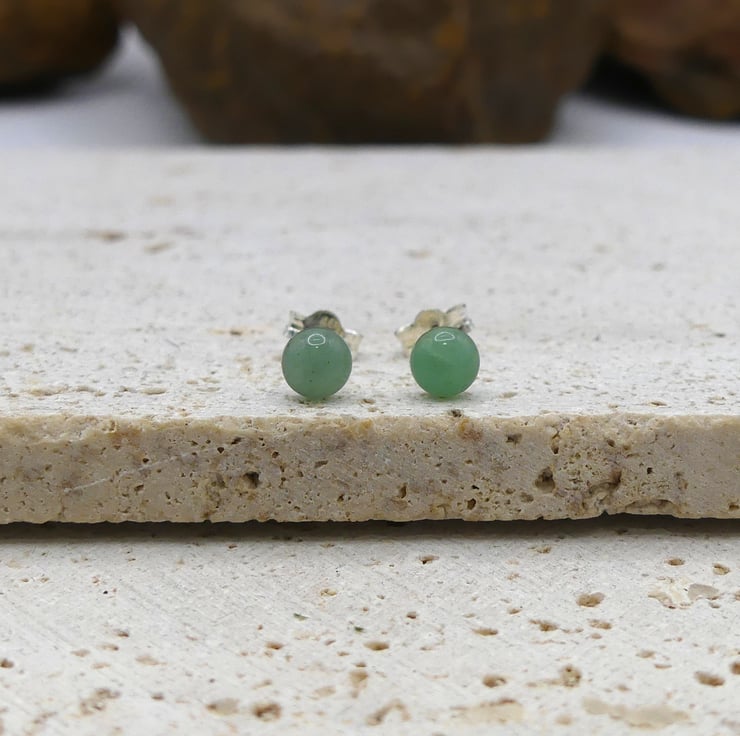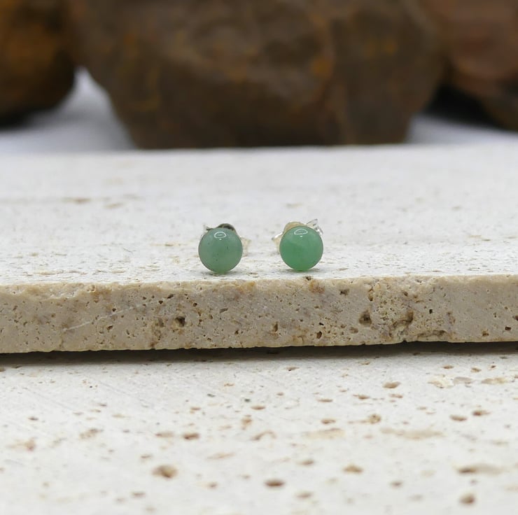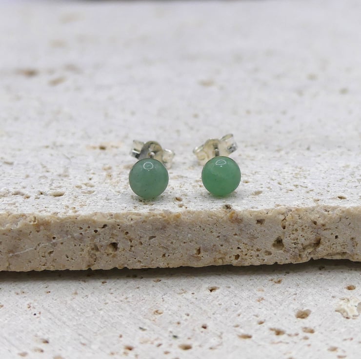 Green Aventurine 5mm Gemstones, Sterling Silver Stud Earrings.