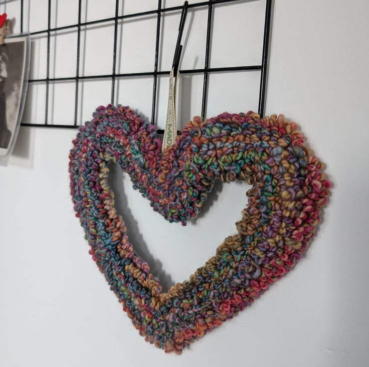 Needle punch wreath made from hand dyed and spun sheeps wool yarn made in Northumberland and hessian base.