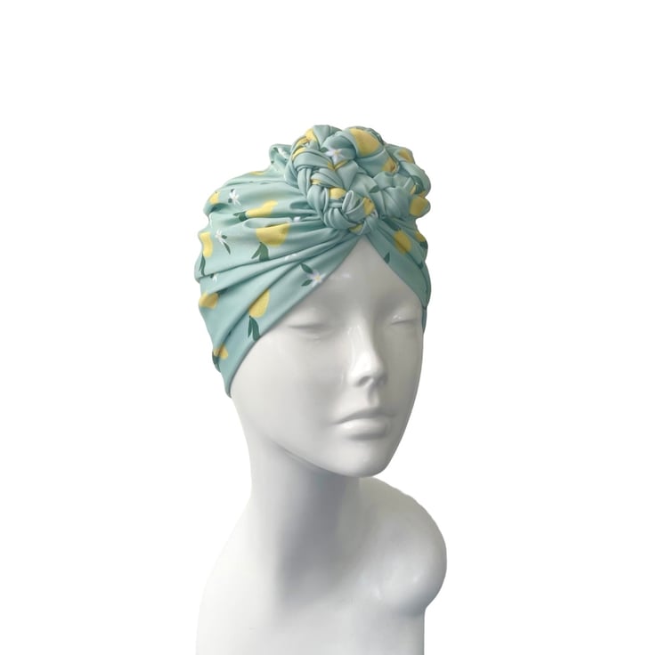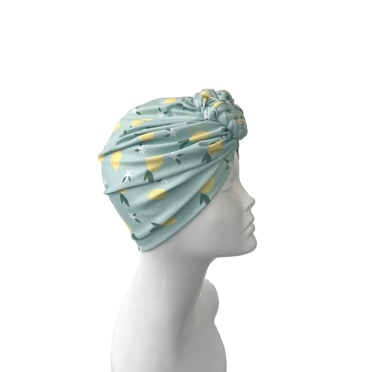Turban Hat Green Lemon Print UPF 50 Turban Hat for Women Hair Loss Head Scarf