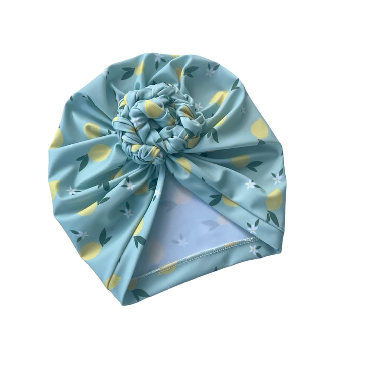This is a soft single-layer (not lined) design UPF 50 swimwear jersey turban hat. The fabric absorbs or blocks harmful UV radiation and remains one of the most effective forms of protection against sun damage and skin cancer. Perfect for summer and beach holidays!