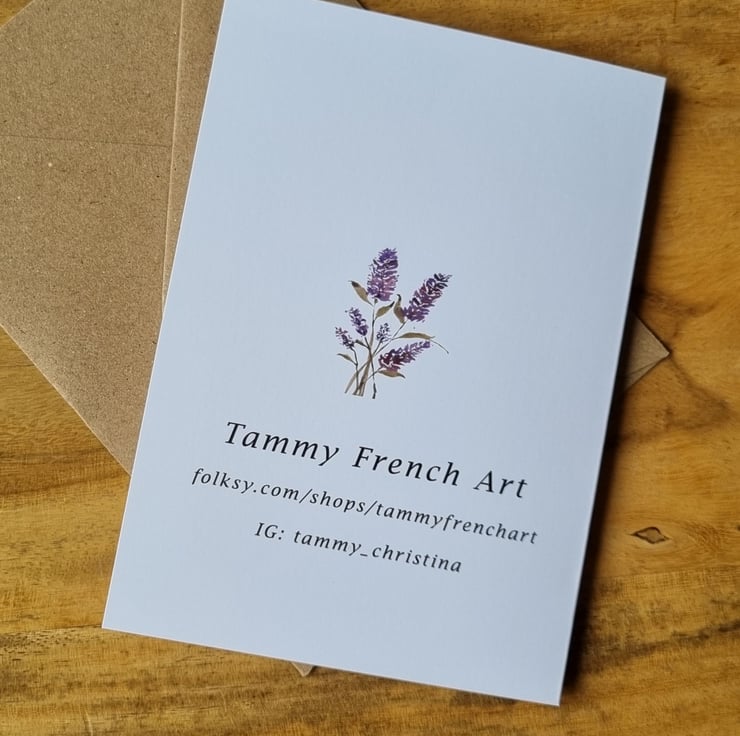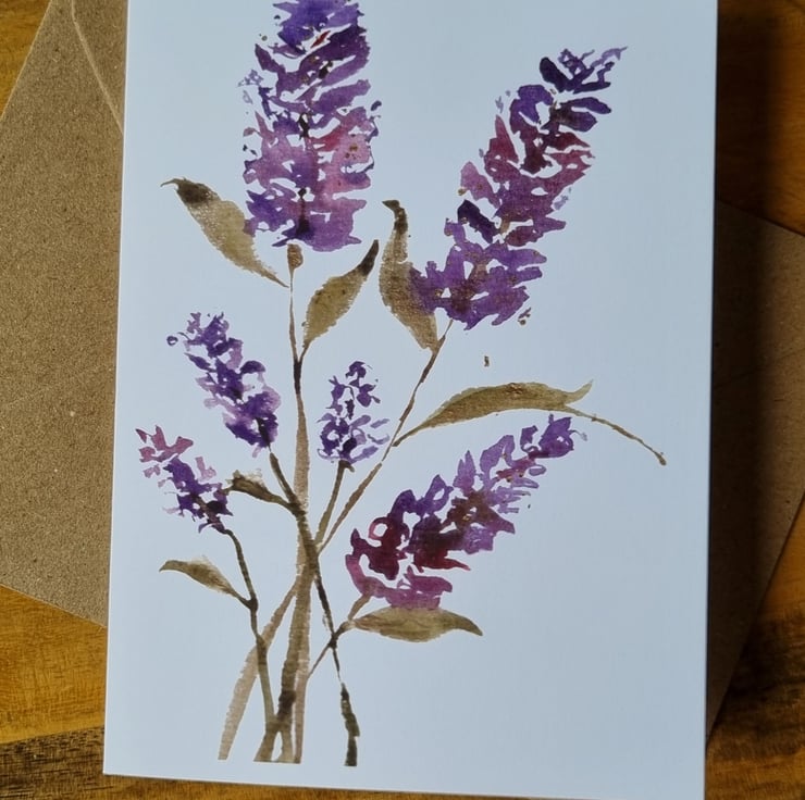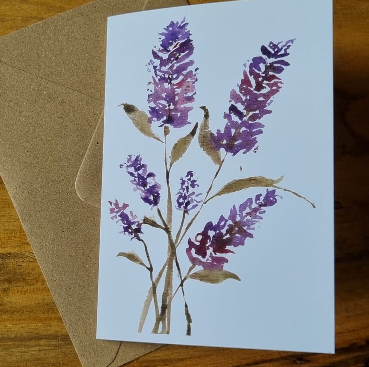 This greeting card of Lavender flowers is a print from my original artwork using watercolour and ink. It is blank inside for your own personalised message.