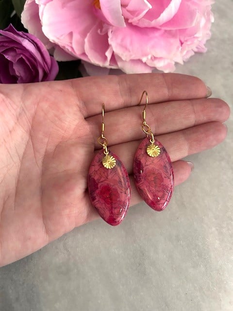 Please note: Each pair is handmade and uniquely patterned. Small imperfections such as air bubbles or slight print variations may occur, adding to the authenticity of your one-of-a-kind earrings.