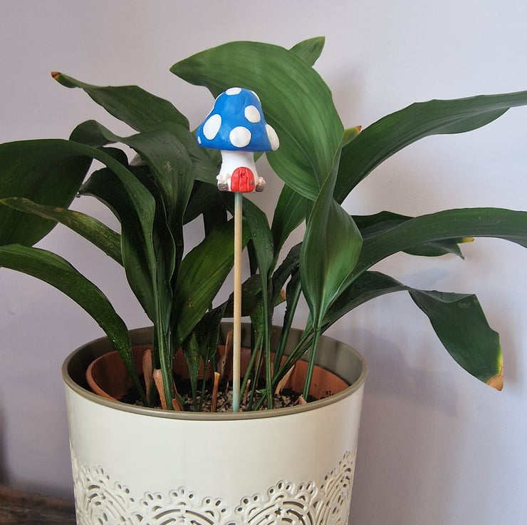 These are handmade using air dry foam clay, and the process means they cannot be exactly replicated (I don't use moulds), so you can be confident each home is unique. They are varnished to seal and protect, and will tolerate the odd splash while watering, if you prefer to shorten the plant stick the Pals are attached to. Personally I would avoid sitting them in damp soil for prolonged periods, but then most plants feel the same way, too.