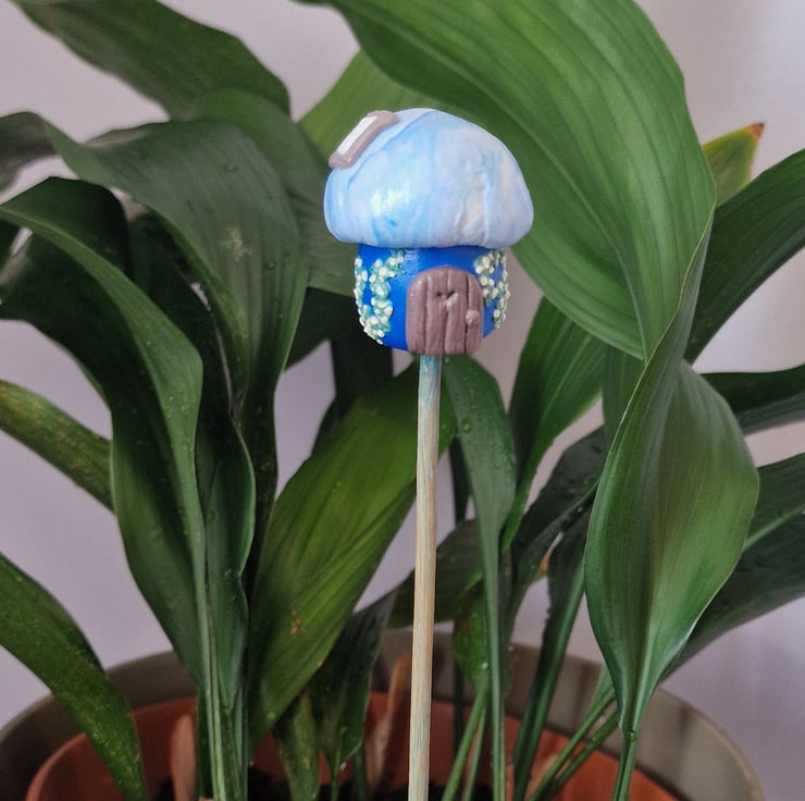 These are handmade using air dry foam clay, and the process means they cannot be exactly replicated (I don't use moulds), so you can be confident each home is unique. They are varnished to seal and protect, and will tolerate the odd splash while watering, if you prefer to shorten the plant stick the Pals are attached to. Personally I would avoid sitting them in damp soil for prolonged periods, but then most plants feel the same way, too.
