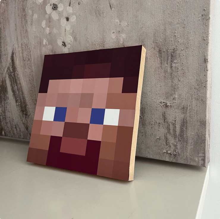 Dreamy charm to your room with this handmade pixel-style art block, inspired by a beloved gaming icon. Crafted from solid wood and featuring a bold pixelated design, this piece stands freely on shelves, desks, or display units — perfect for game rooms, kids' bedrooms, or as a quirky gift for Minecraft fans.