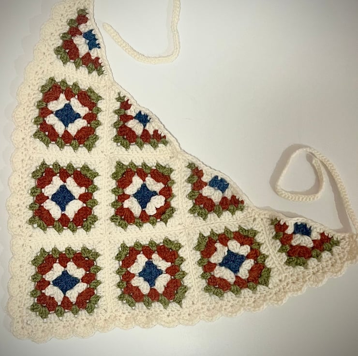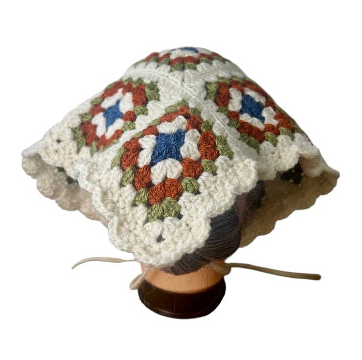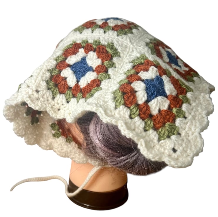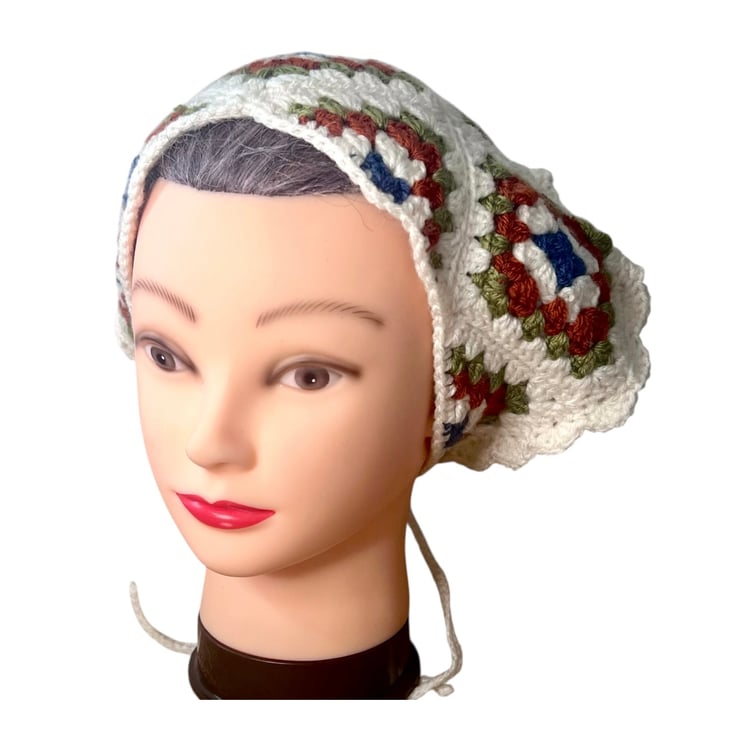 handmade crochet bandana headscarf made with lovely granny squares giving it a 70s hobo style with retro look perfect for spring and summer - festivities events - hair accessories for your outfits