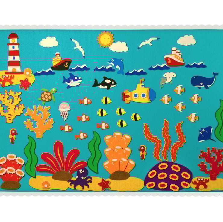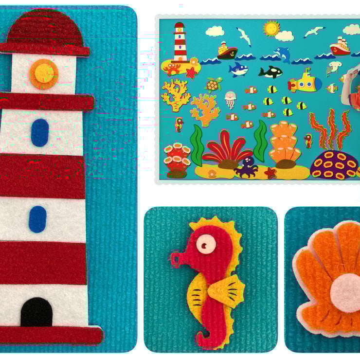 Dive into an underwater world of creativity with this handcrafted felt story board set. Designed to inspire storytelling and hands-on learning, it includes 106 VELCRO®-backed pieces featuring sea creatures, submarines, coral reefs, and more.