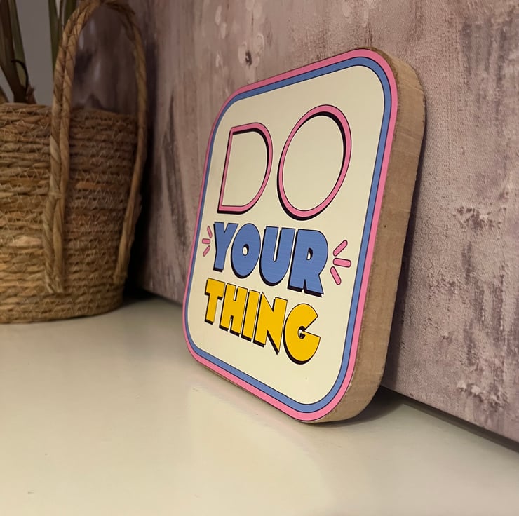 Add color and motivation to any space with this handmade wooden plaque featuring the bold quote “DO YOUR THING.” Designed in a fun retro style, it’s perfect for office decor, bedrooms, dorms, or as a gift for someone chasing their dreams.